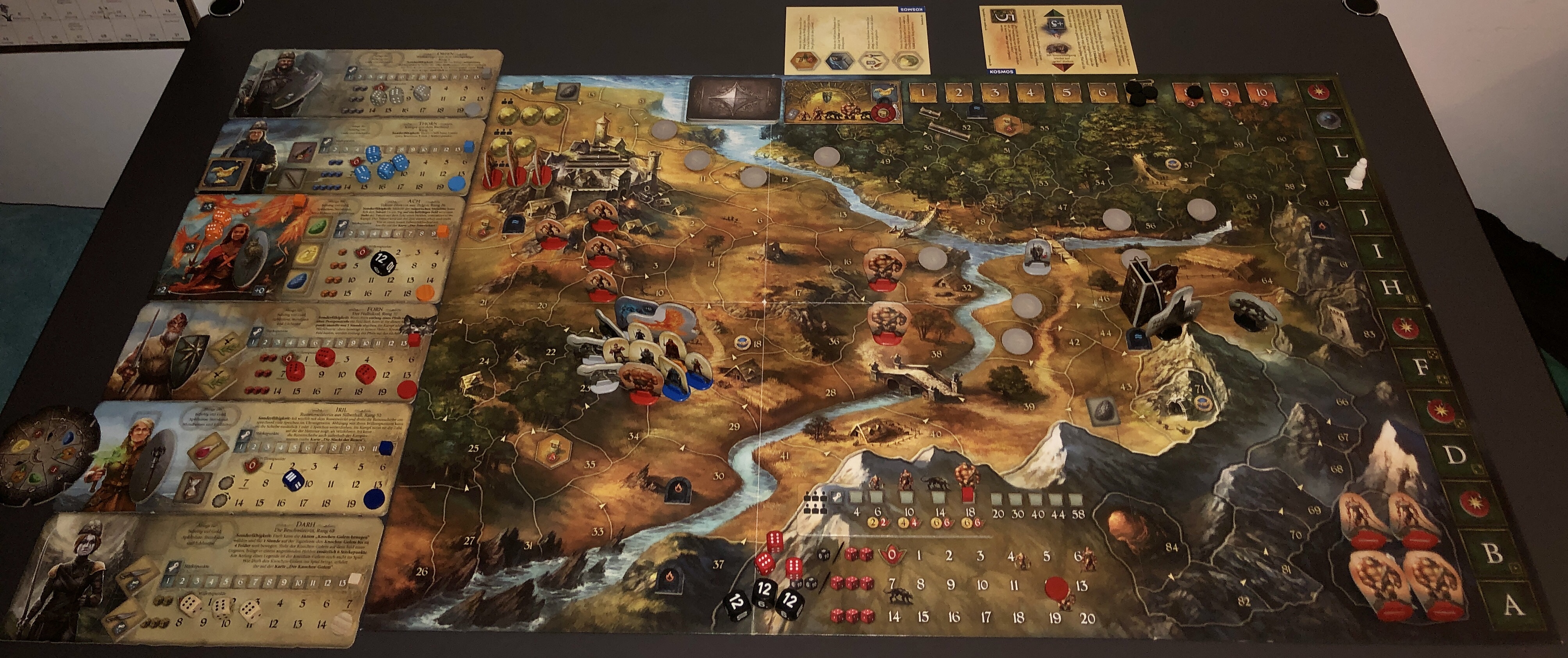 Glücklicherweise las ich die Mini-Erweiterung nochmals genau durch und sah das kleingedruckte "eignet sich nicht für das Spiel mit 5 und 6 Helden", ehe ich noch länger versucht hätte, diesen Loop hier umzusetzen.