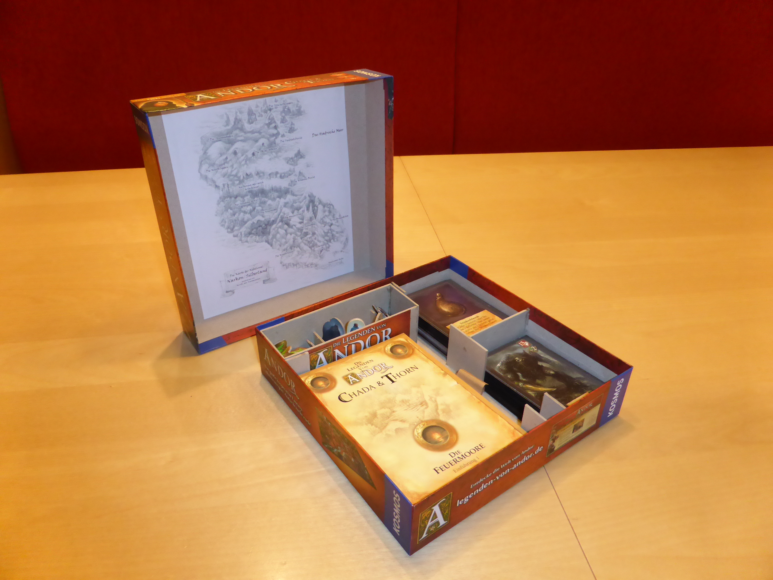 Für meine Andor spiele habe ich mir jeweils 2 Sortierboxen von pollin gekauft. Die passen perfekt in die Schachtel und da passt alles rein. Bei mir liegen lediglich die Ereigniskarten und die Schicksalskarten in Tüten. Der Rest passte in die beiden Boxen.