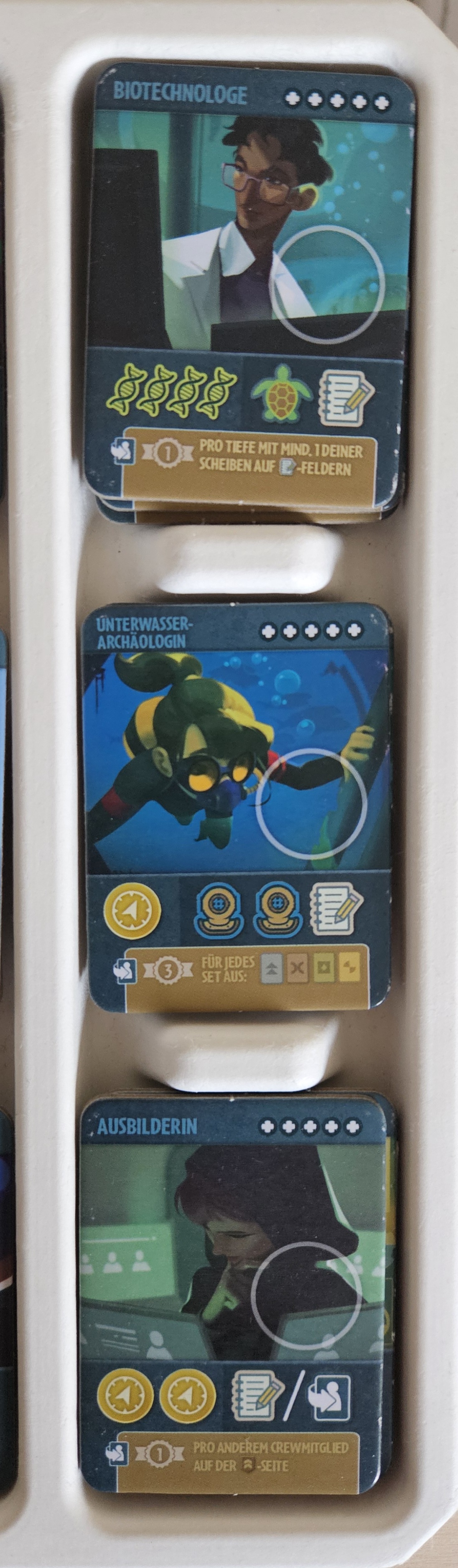 Zusätzlich wird noch das Tauchplättchen aufgedeckt und der Marker damit umgedreht. +3 Wissen (oder eine Gratis-Bewegung)