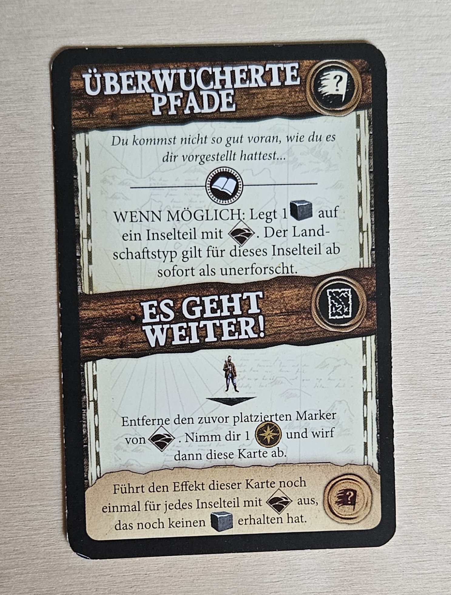 - Bei einem Buch-Symbol auf einer Ereigniskarte wird unsere Palisadenstärke um 1 gesenkt. Bzw. erhalten alle 1 Wunde, wenn das nicht möglich ist.
