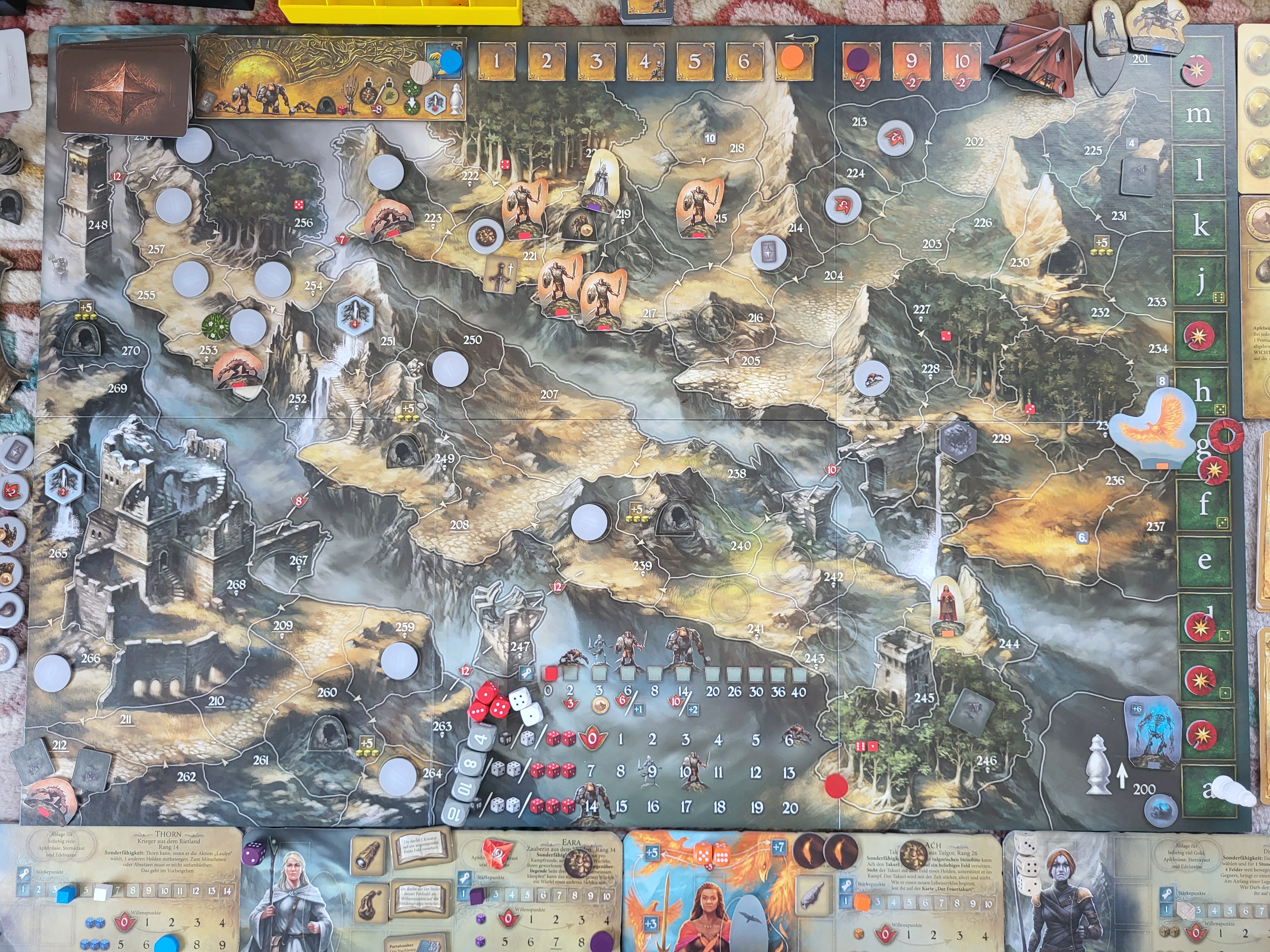 Die Helden machten sich bereit, den Bleichen König zu jagen. Das scheue Bergvolk weiß bestimmt etwas genaueres und Sie machten sich auf die Suche nach Ihnen. Thorn schaute in einer doch leeren Höhle nach und fand dabei einen roten Rubin, Darh sieht trotz Nebel einen Trinkschlauch und Eara erlernt einen neuen Zauber.