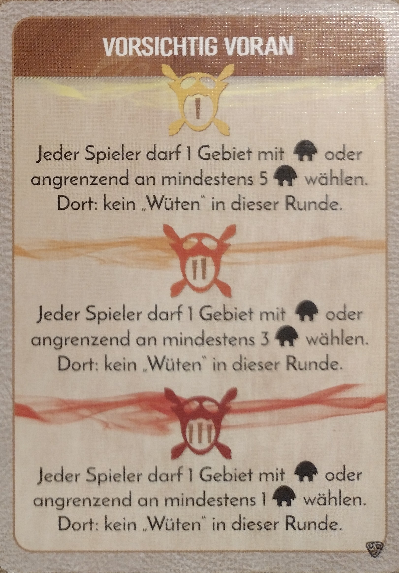 Den eigenen Träumen nachjagen auf D4: 1 Dorf wird zu 2 Entdeckern (12 E/3D). Da noch Dörfer in D4 sind: +1 Furcht.