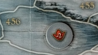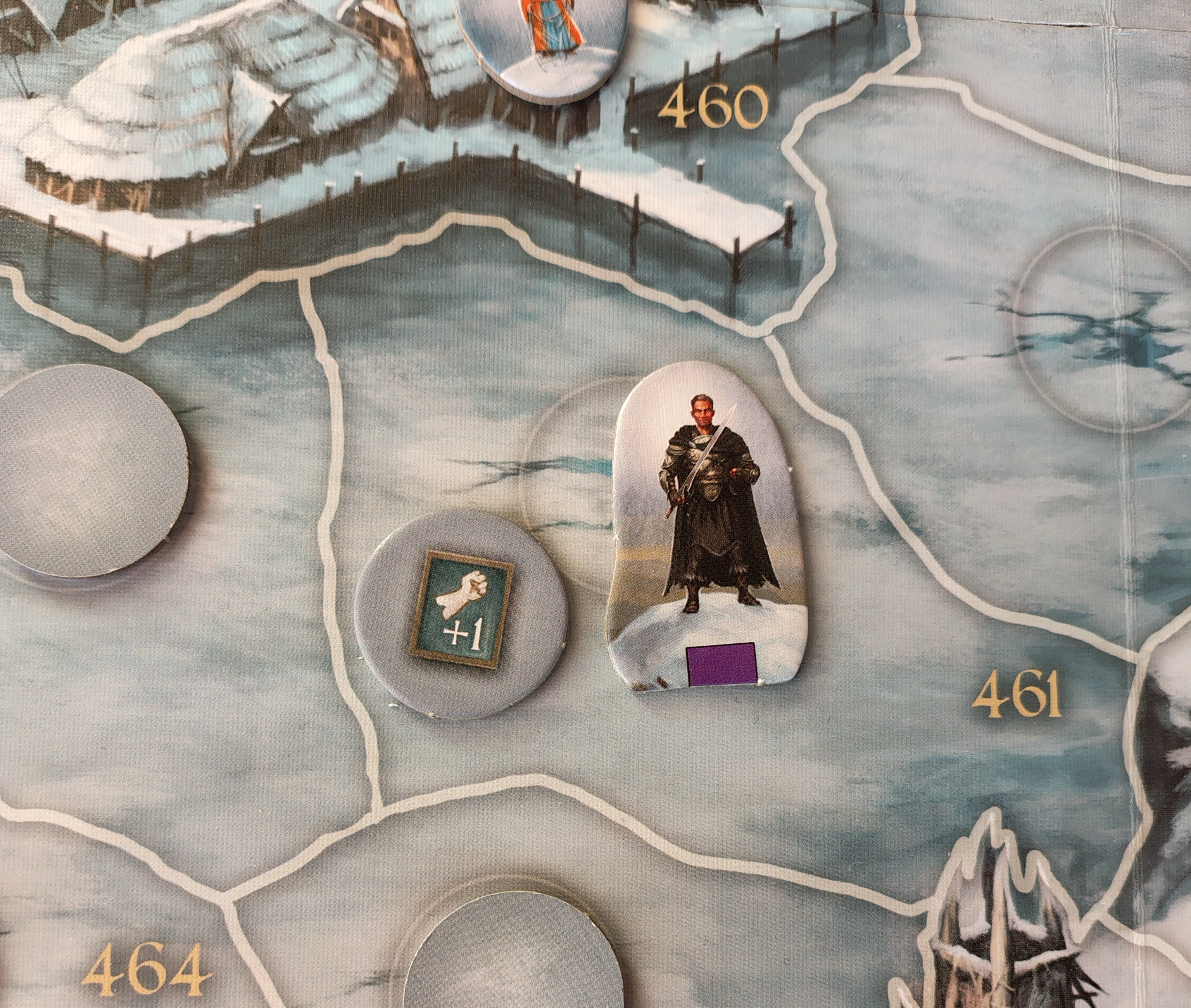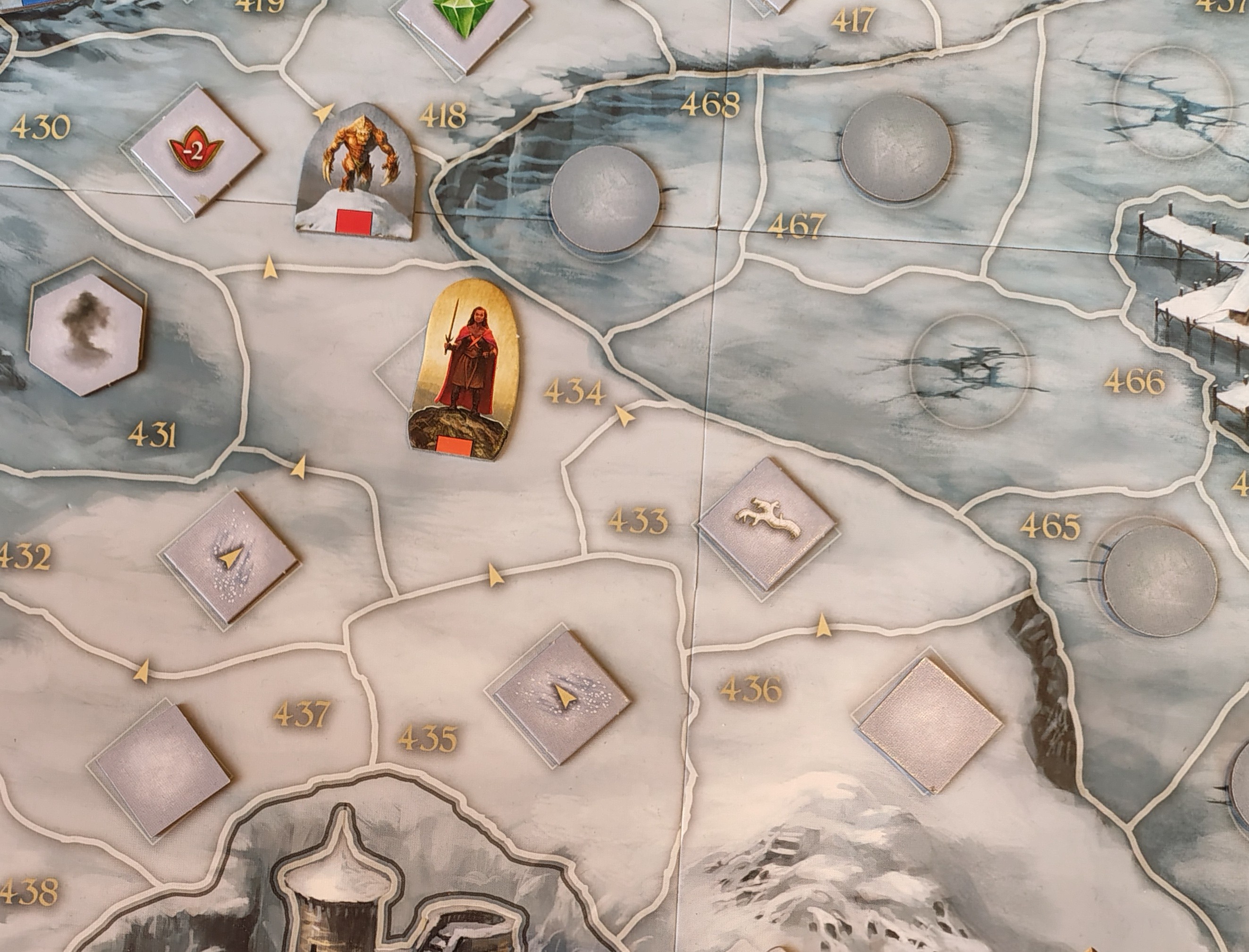 Thorn wagt sich vorsichtig auf den See hinaus (Feld 454, 2.h). Doch er ist nicht vorsichtig genug und rutscht aus.