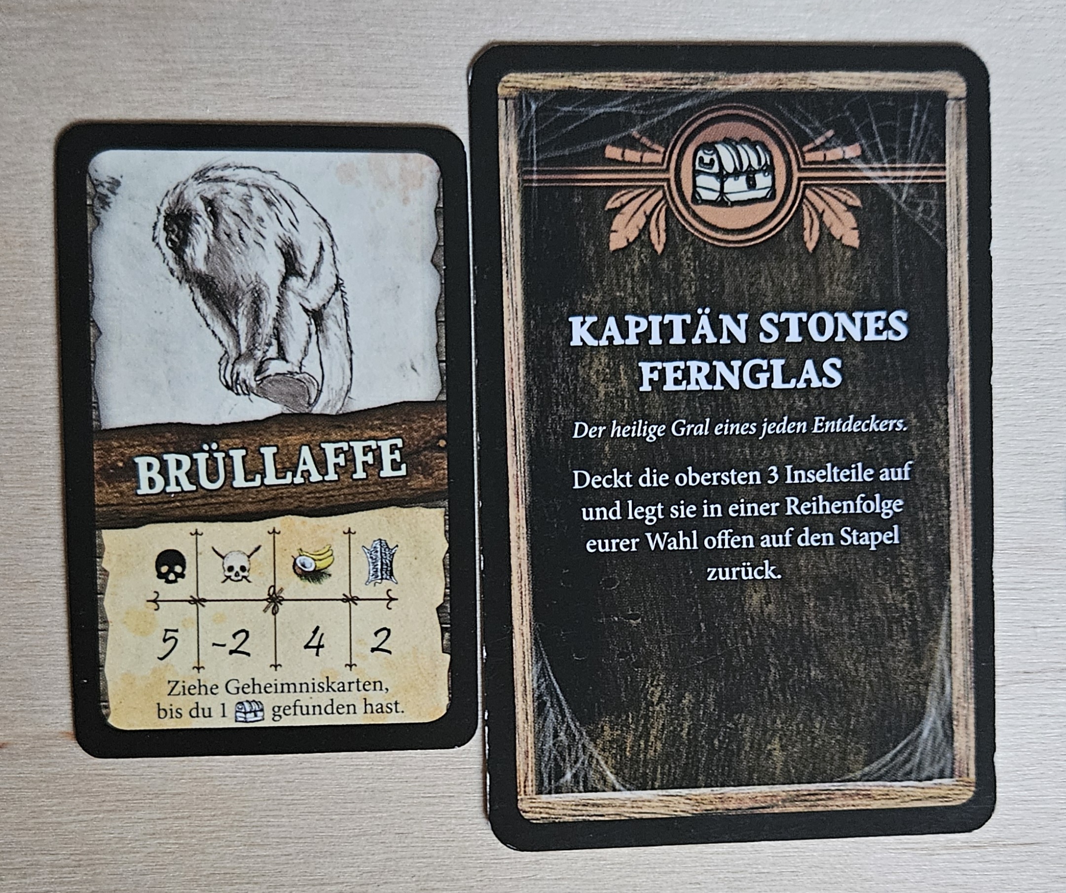 Verrückt: trotz eines großen Tierkarten-Stapels und trotz zahlreicher neuer Karten ist wie beim 1. Szenario der Bär die erste mögliche Jagdbeute. (Aber jetzt wissen wir auch, wem die Höhle gehört, wo wir unseren Unterschlupf eingerichtet haben.