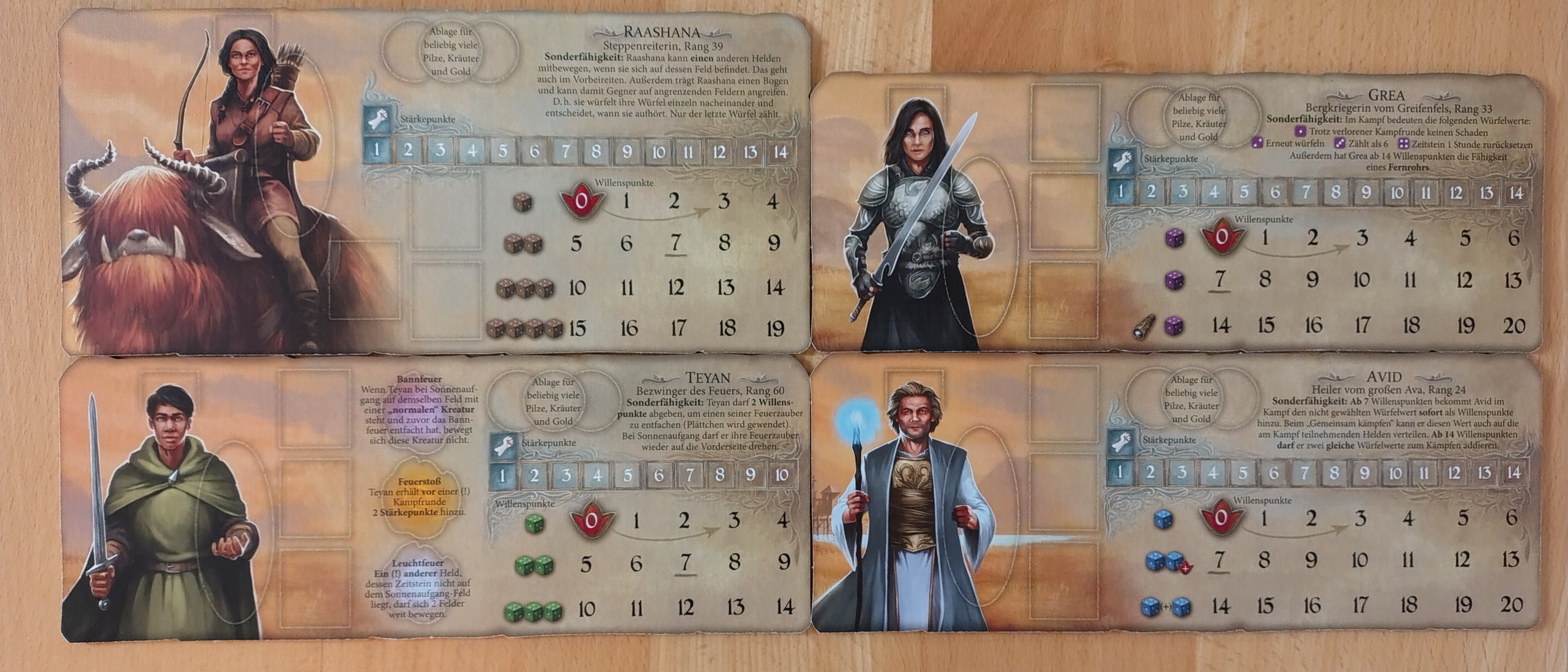 Nur ganz kurz: Ich habe gerade keine Fotos zur Hand, aber zumindest die Zweitnamen und Sonderfähigkeiten der fernen Held*innen kann man auch in Alle Helden überall nachlesen (gerade Schrift sind offizielle Regeln, kursive Schrift sind Fan-Hausregeln).