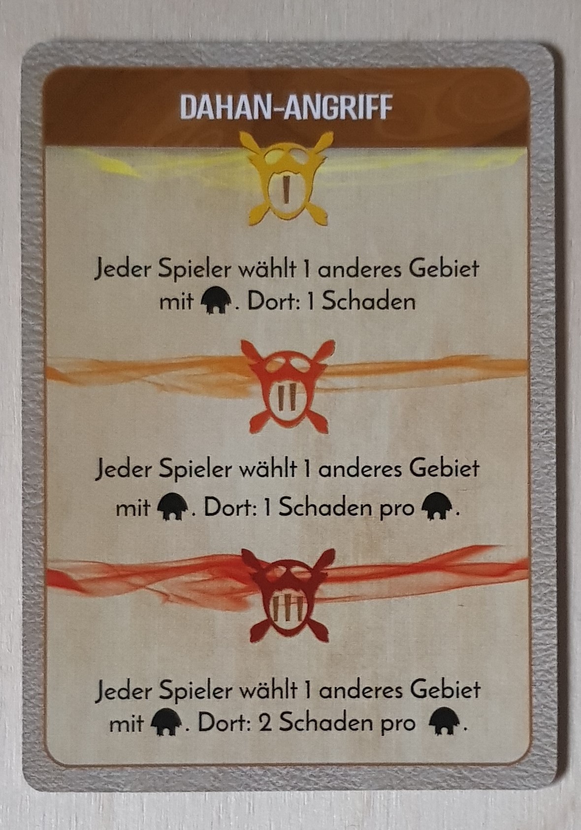 +2 Furcht und er darf ein Dorf und einen Entdecker aus einem seiner Gebiete (NO8) rausschieben.