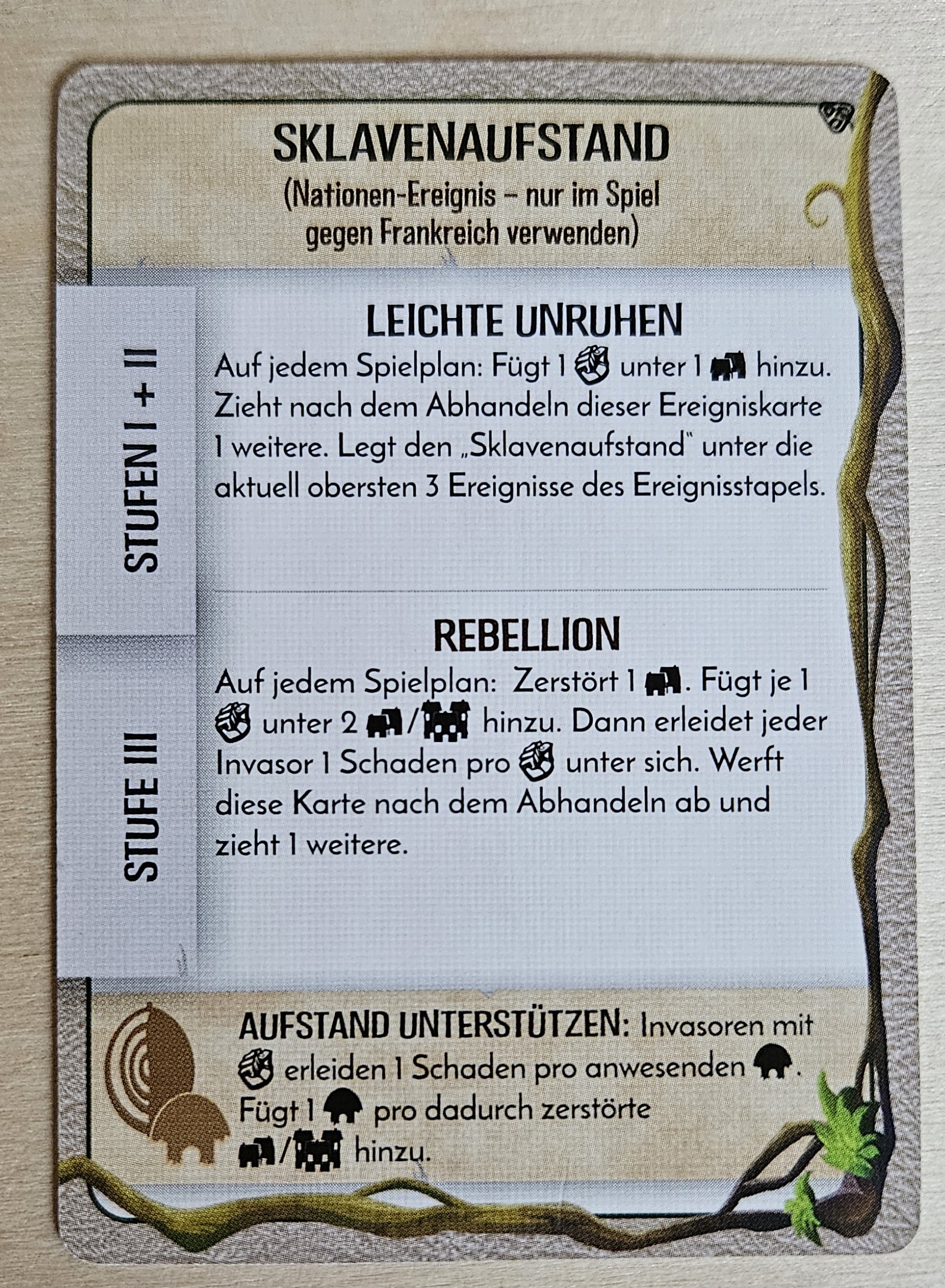 Nachdem die "Leichten Unruhen" beim "Sklavenaufstand" vorüber sind, folgt hier die nächste Ereigniskarte.