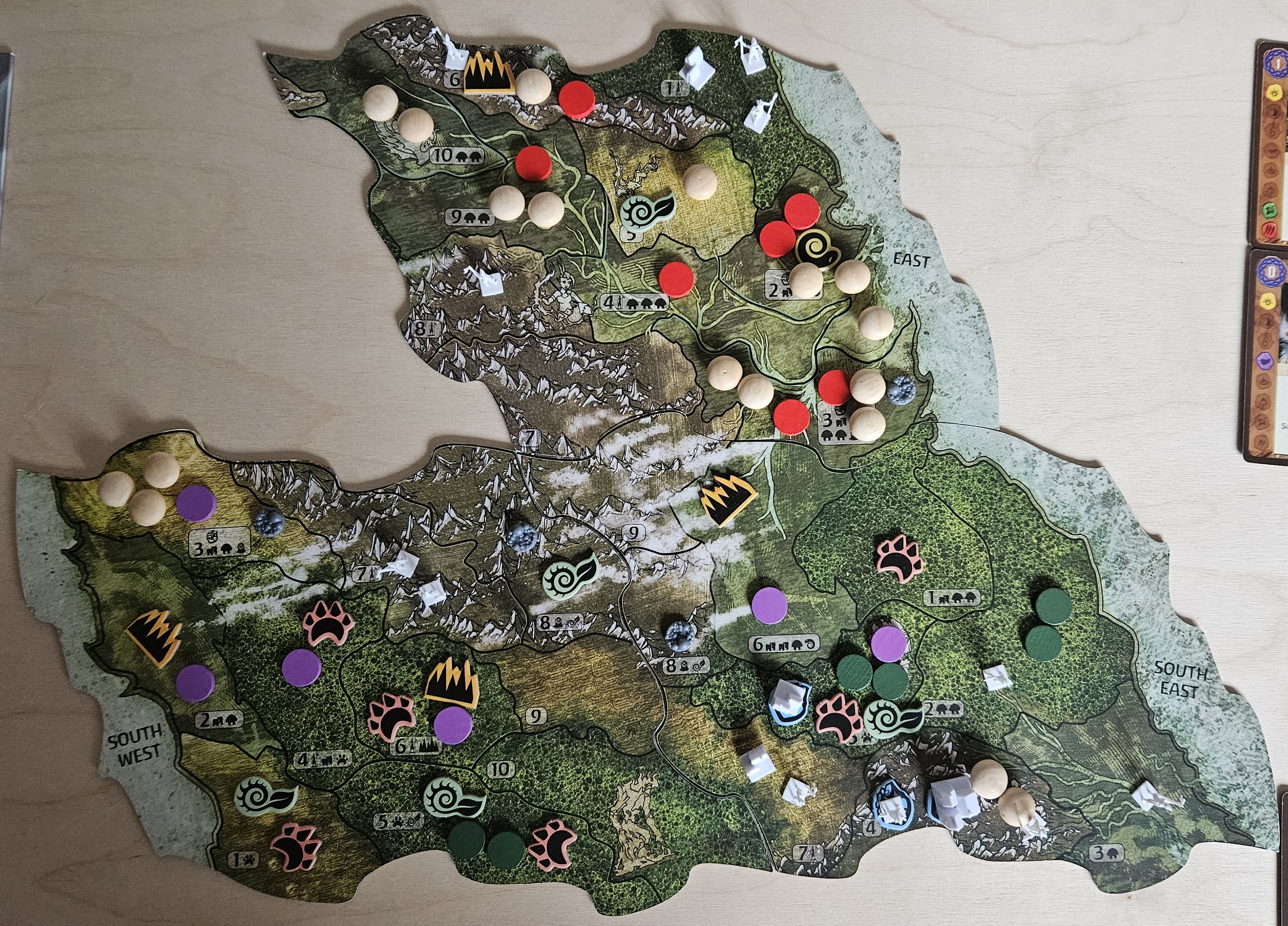 Wie ich es vorhergesehen habe, jetzt fehlt mir die 1 Energie, die ich beim Ereignis bezahlt habe... :? Sonst könnte ich meine Gebiete am Ende der Runde frei von Dörfern und Städten machen. Aber gut, dann wird das noch eine Runde länger dauern...