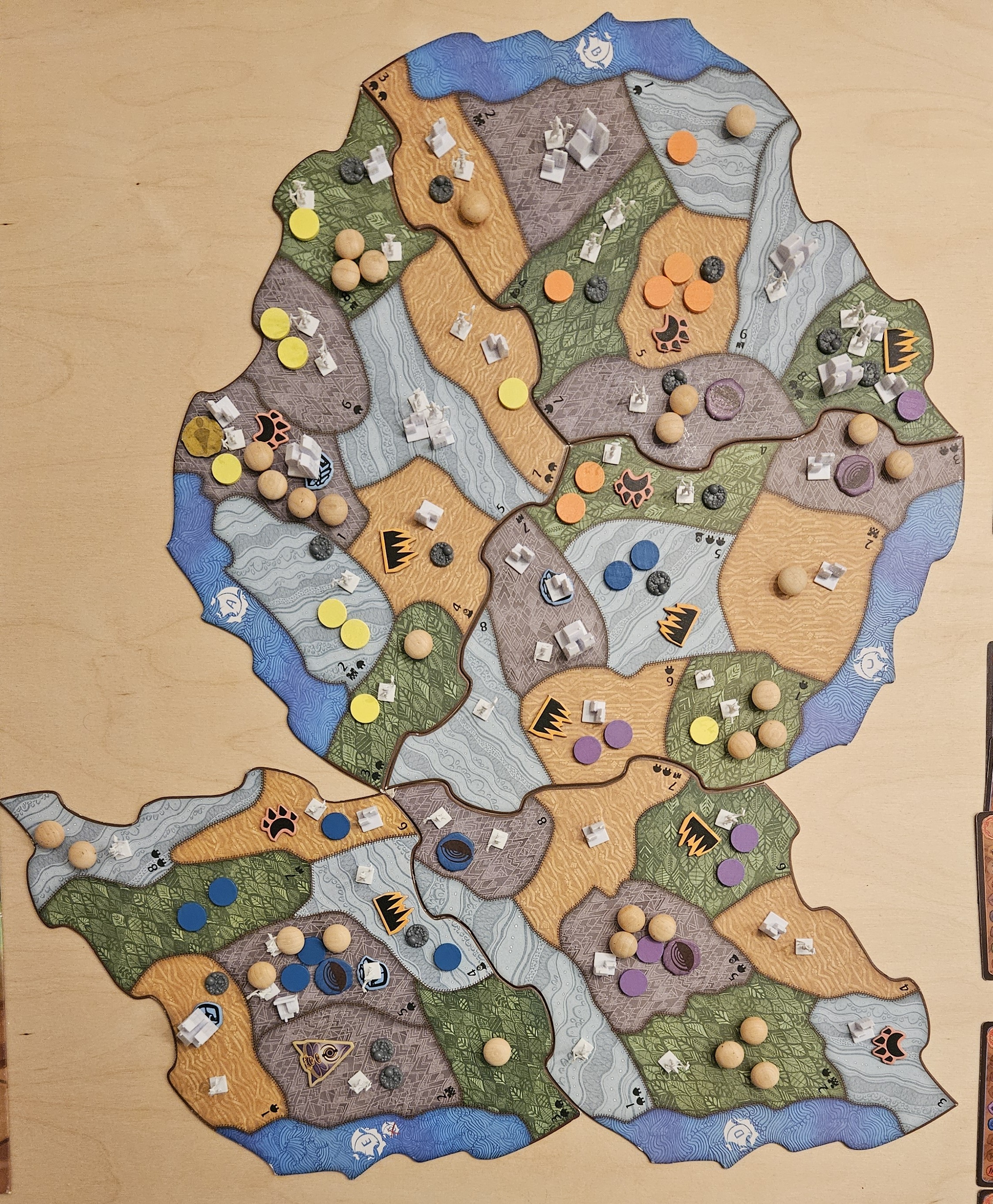 Elementareffekt auf C1, +1 Einöde, 1 Dahan nach C2, 2 Dahan nach C5, alle Entdecker plus Dorf zerstört.