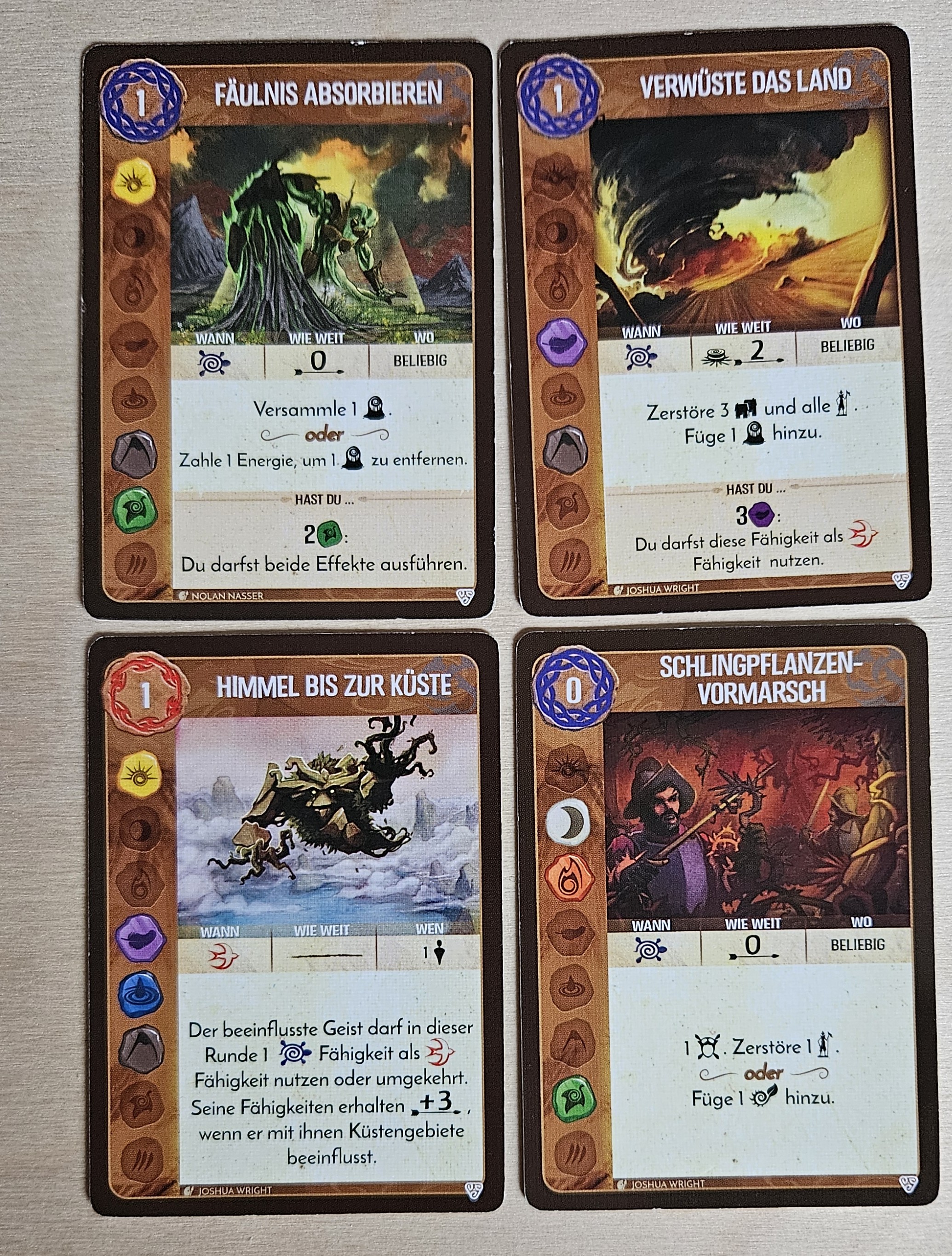 1 Entdecker mit Streitmarker, einen Entdecker ohne Streitmarker und 2 Dahan hinüberschieben (alle drei Zeilen aus Todeshauch). Dann kann Moai/Das Wispern die Stadt und 2 Entdecker mit Streitmarker zerstören.