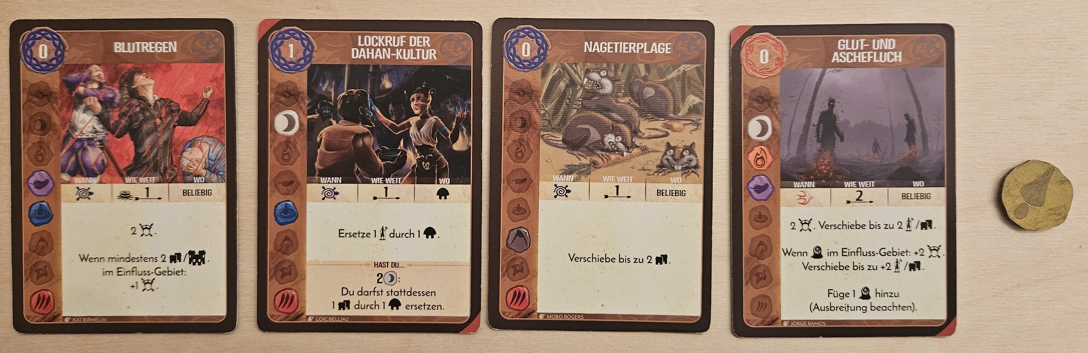 So, im Nachhinein betrachtet: Wäre die Konstellation auf der Insel eine andere gewesen, hätte ich die FK lieber nacheinander abgehandelt. So war es dann doch ein wenig chaotisch/unübersichtlich. Kann gut sein, dass in dem einen oder anderen Gebiet ein Entdecker jetzt mehr stehen würde (dafür vielleicht eine Seuche weniger), aber am Ende spielt es im Hinblick auf den nahenden Sieg keine große Rolle mehr.