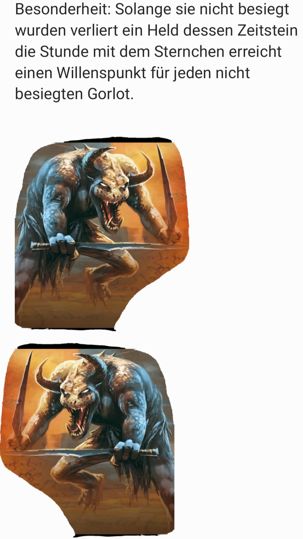 Die Gorlots kommen tatsächlich auch offiziell, nächstes Jahr in DFL. Siehe TroIIs Bericht von der SPIEL hier. Demonstrierte unsere Steppenechse prophetische Gaben?Legolas Grünblatt hat geschrieben:Ich mag das Design der Gorlots sehr und finde es schade das sie bisher noch nicht offizielle Figuren haben![]()