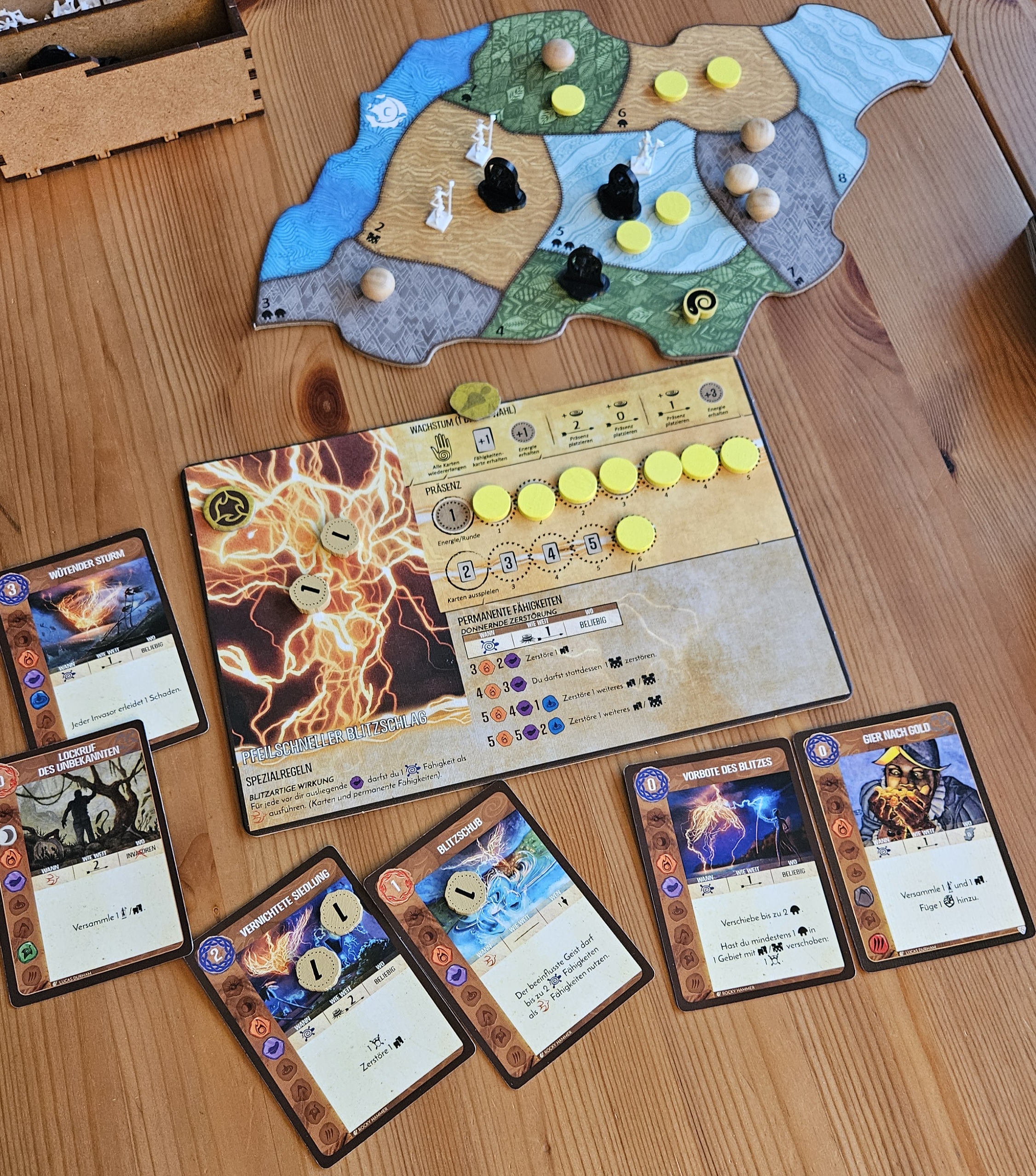 Ich habe heute das erste mal gegen das Königreich England gespielt (Stufe 2). Ich habe es mir leicht gemacht und für den Blitzschlag entschieden. So wurden die Invasoren in der SP in Runde 5 (FS II) besiegt. Ich bin mir aber nicht sicher, ob ich die Nation richtig umgesetzt habe. Daher 2 Fragen an die Geisterspezialisten: