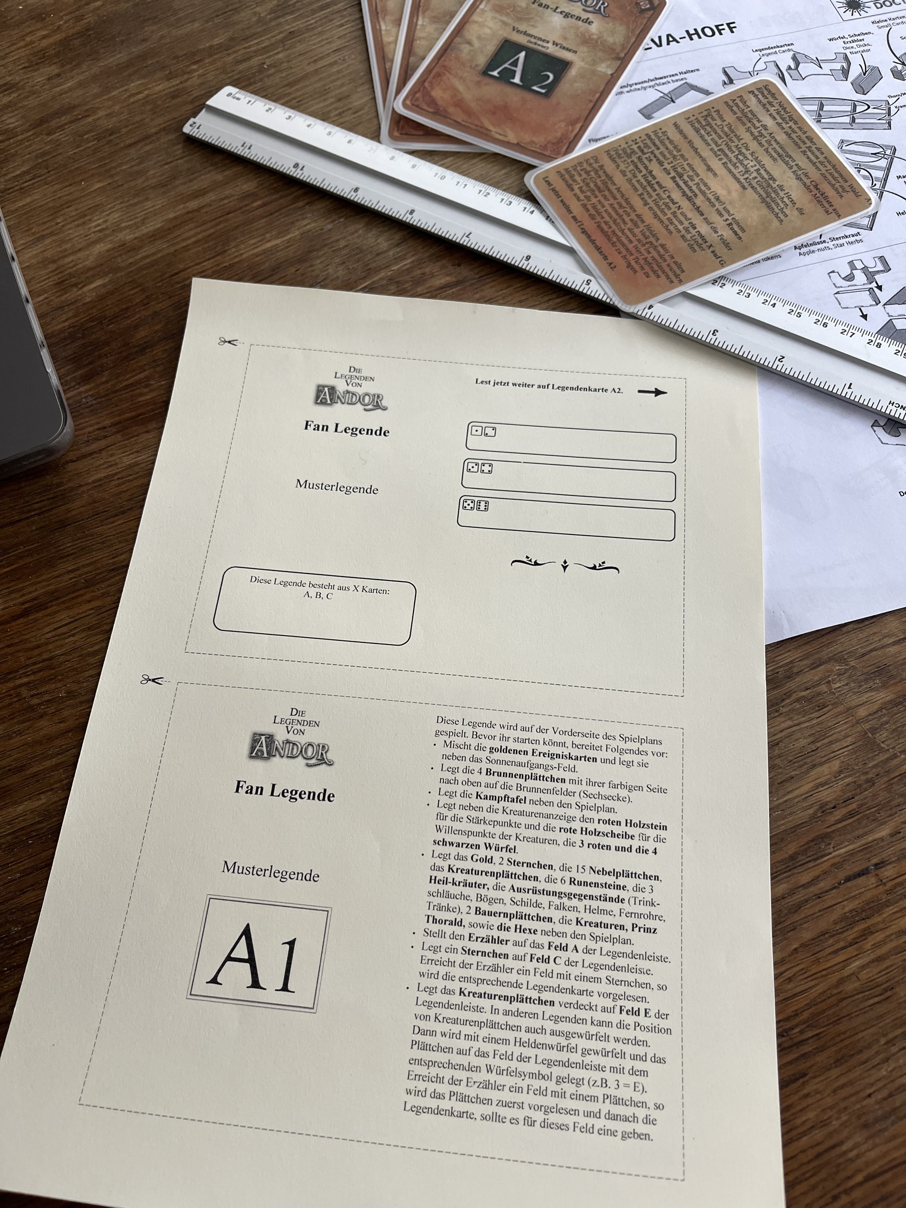 Nachdem ich einige Fan-Legenden und auch offizielle Mini-Erweiterungen bereits ausgedruckt, fein ausgeschnitten und laminiert habe, musste ich feststellen, dass trotz des ganzen Aufwands ich am Ende unzufrieden war. Auch wenn alles so aussehen soll, wie die originalen Legendenkarten, tut es das am Ende doch nicht.