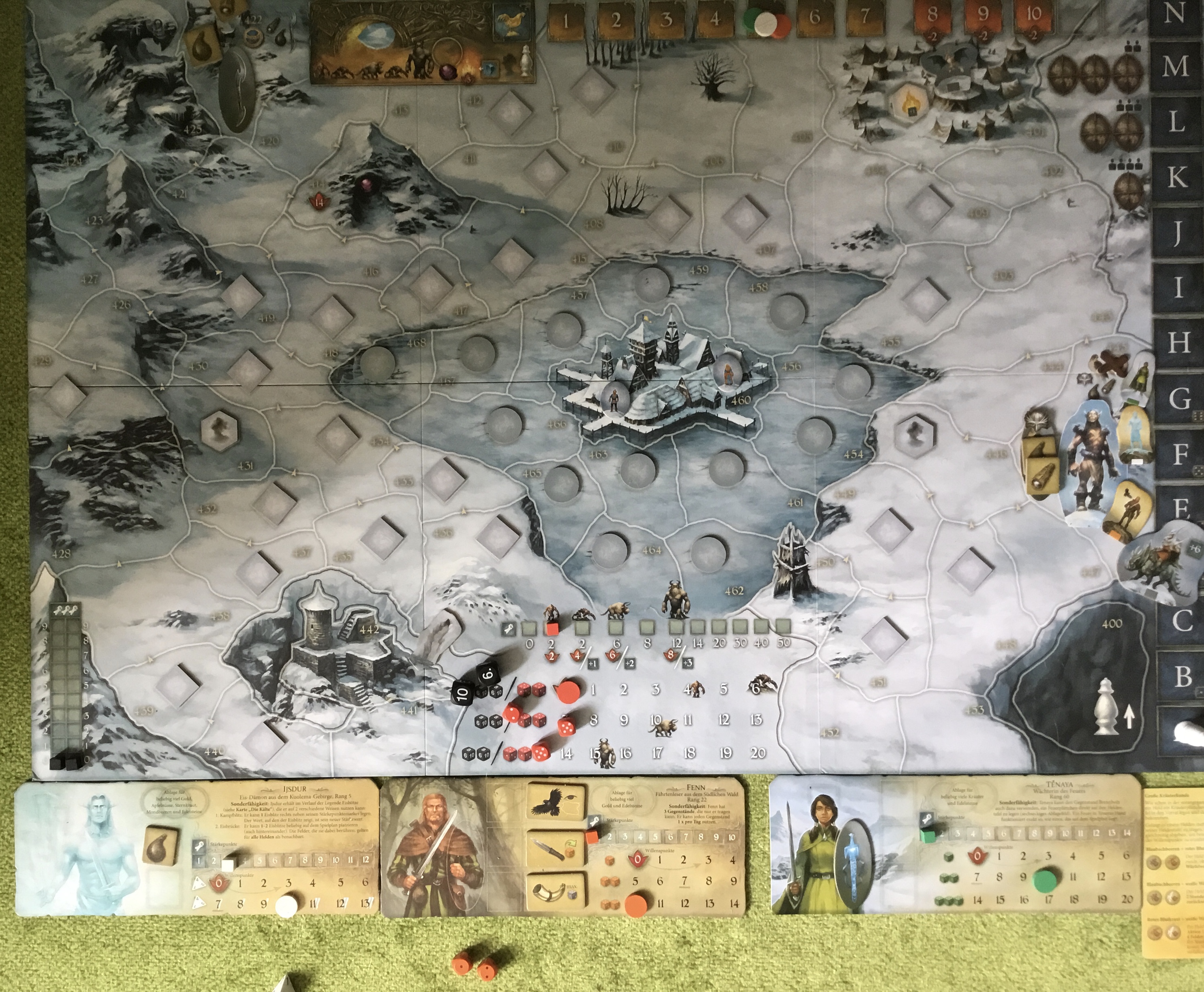 Legt den Geheimgang zwischen Feld 442 und 436. Legt zwei Iquar auf Feld 460.