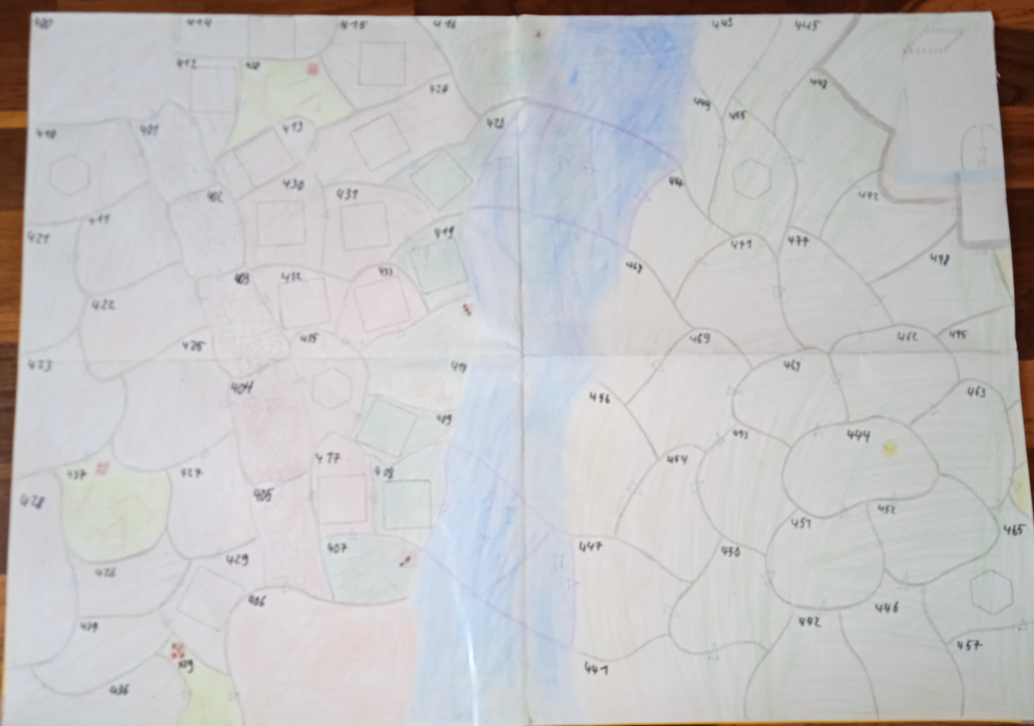 - Deswegen ist die Grafik vom Spielplan komplett handbemalt und in mehrere Teile zerteilt. Ich hoffe, er ist trotzdem einigermaßen bespielbar!