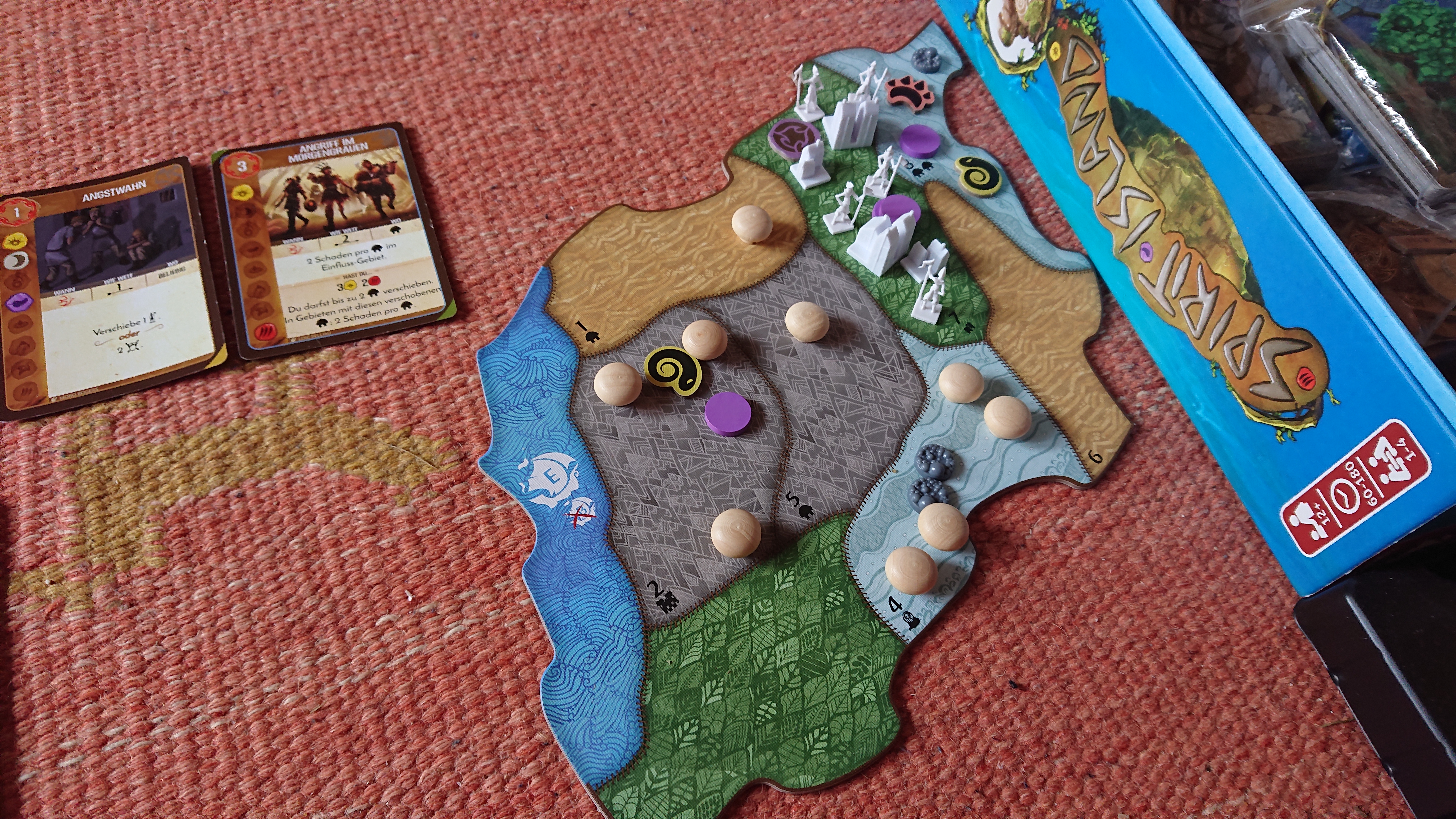 Erste FK: Vorahnung. Nett und verhinderte in 2 Gebieten potentiell Ödnis. Blieben halt noch 6 andere Gebiete, die ich nicht verteidigen hatte können bei 3 verbliebenen Ödnismarkern.