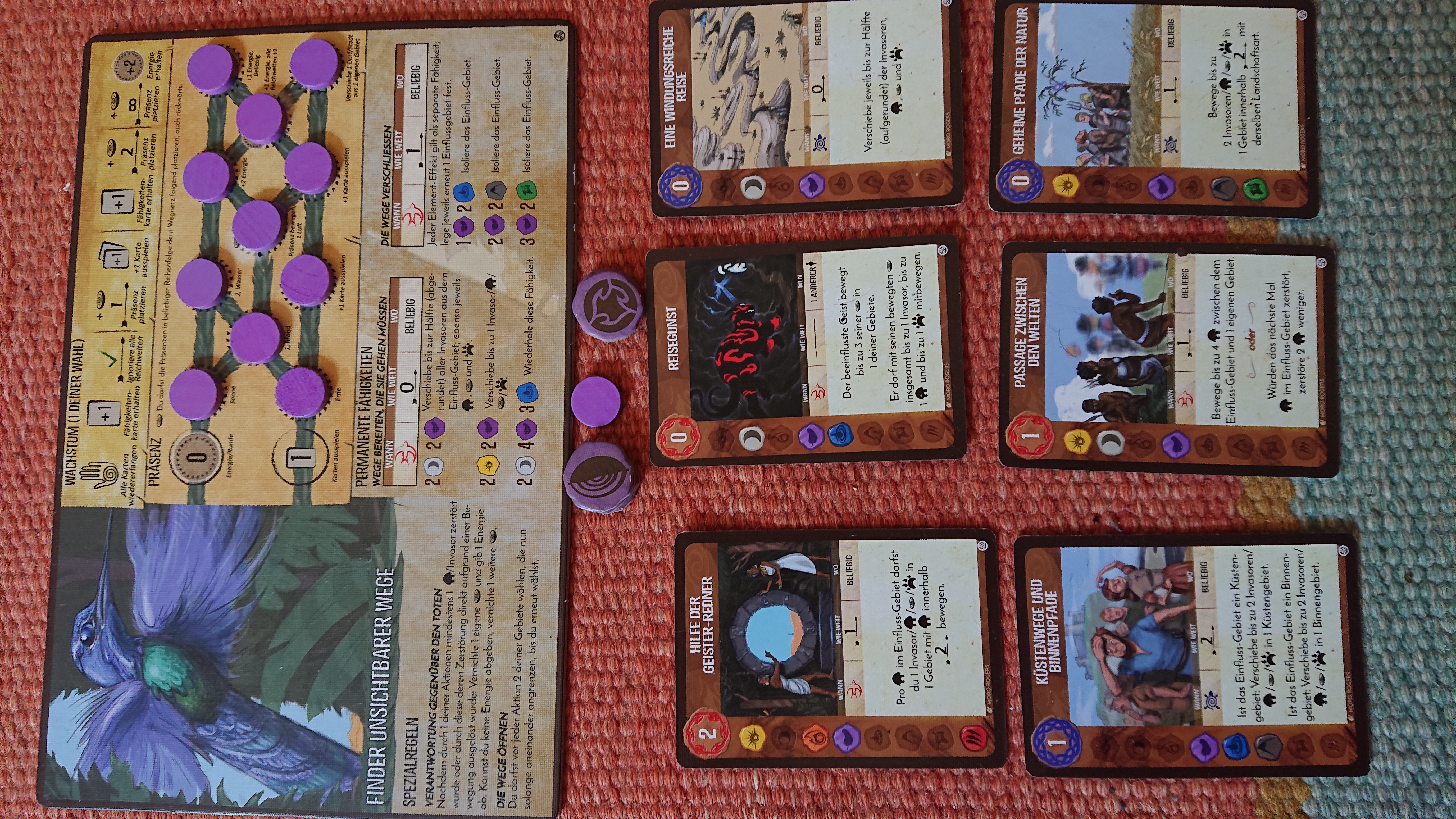 Als erstes: Nutztiere drehen durch, wird auf D7 gespielt. Das gibt 1 Furcht und Verteidigen 5. Das sollte für 1 Dorf und 1Stadt reichen. Den Rest erledigen die drei Dahan.