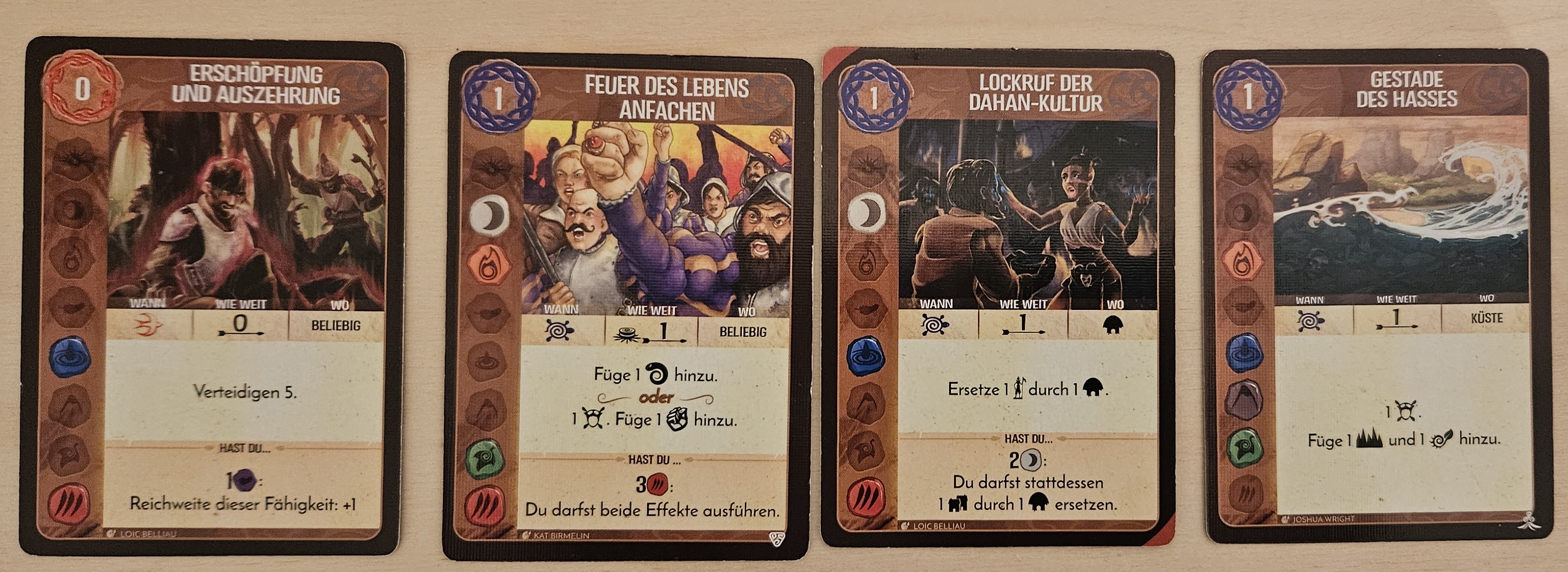 Das Sternenlicht, soviel sei gesagt, macht unabhängig von allem die Standarderöffnung bezüglich Wachstum: Eine Präsenz nach 0 setzen, die erste Zeile freischalten, dabei die rechte Option wählen, die linke verschließen, eine schwache Fähigkeit wählen, eventuell eine Präsenz um -->1 versetzen, und +1 Energie erhalten (und noch mal +1 Energie von der Energieleiste.