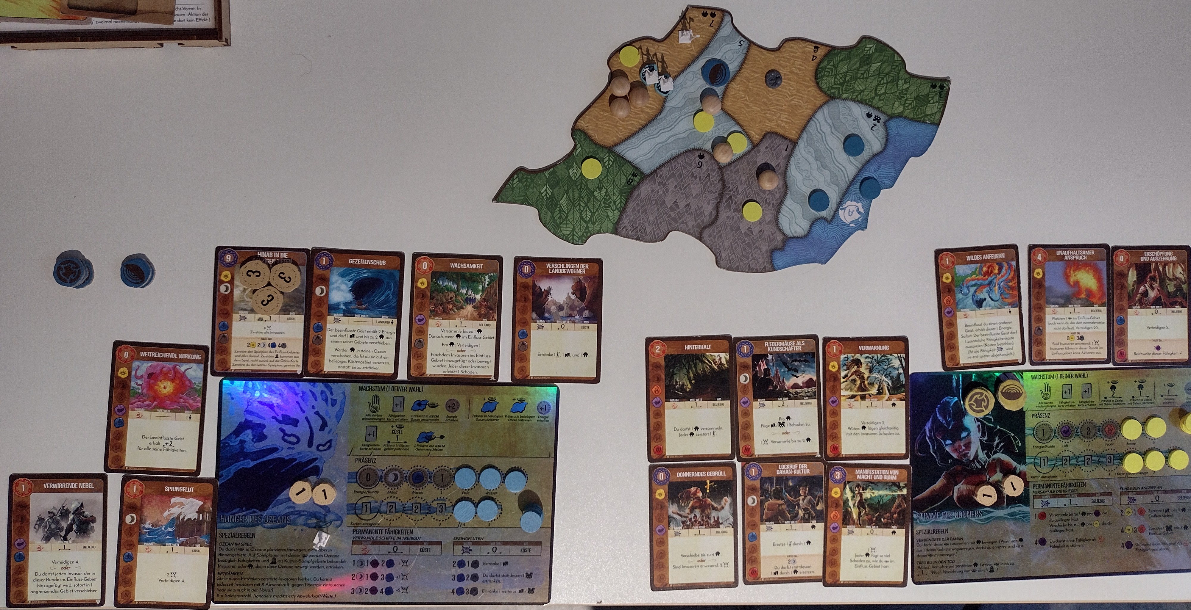 Zu Beginn hatte ich enormes Glück: Die Invasoren erkundeten die Sümpfe und ich hatte die frei platzierbare Präsenz des Ozeans nach O1, den Sumpf, gesetzt.