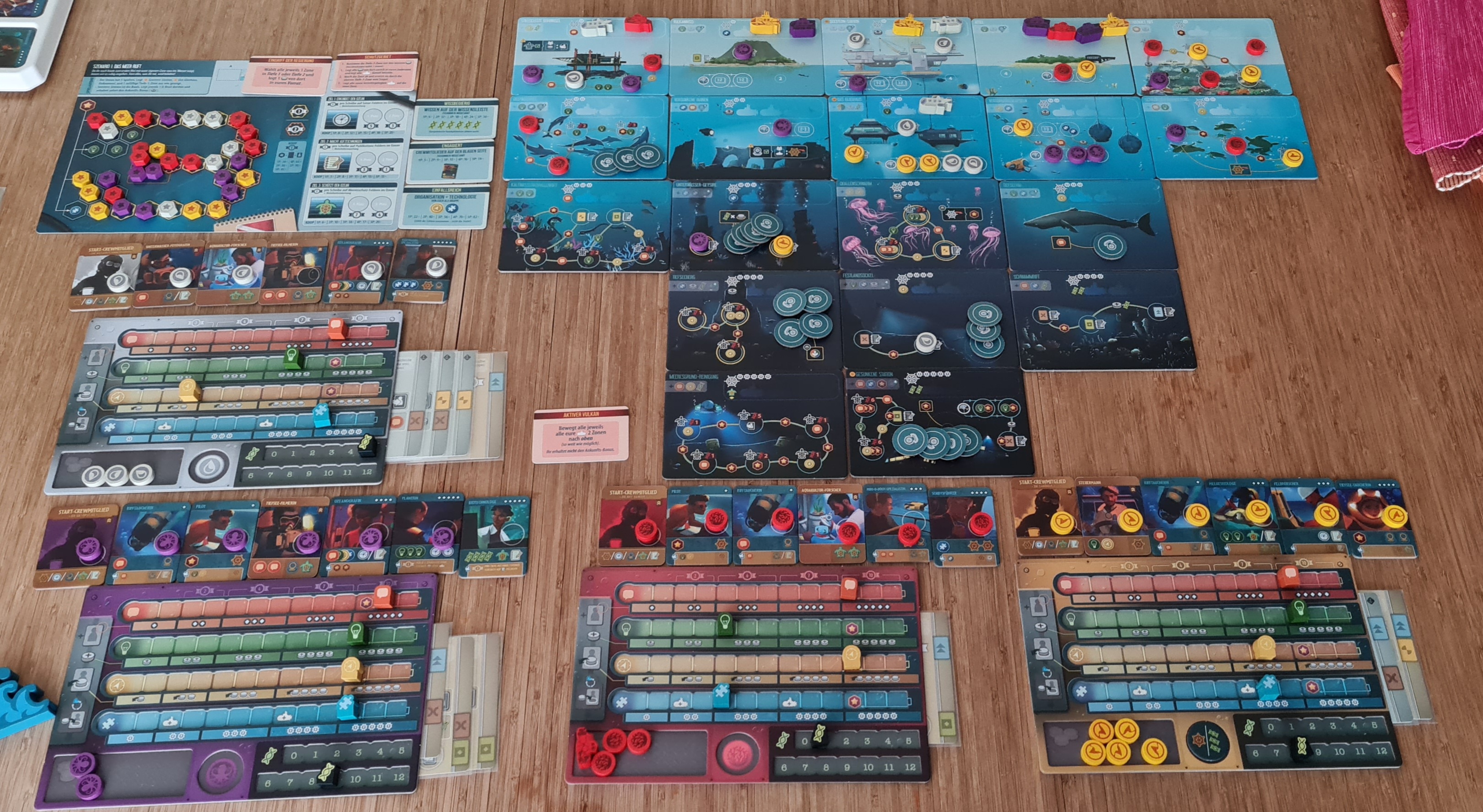 Dann zu meinen Entscheidungen: Natürlich nehme ich die Delfinschule und da wir Sonar nicht mehr brauchen (denke ich?), werde ich das Kaltwasserkorallenriff nehmen. Haben wir dann genügend Felder für Publikationen und Meeresschutz? Organisation würde ich zwar dringender benötigen als Motivation, Scheiben hab ich genug, aber was soll's, auf Level 5 komm ich ja eh nicht