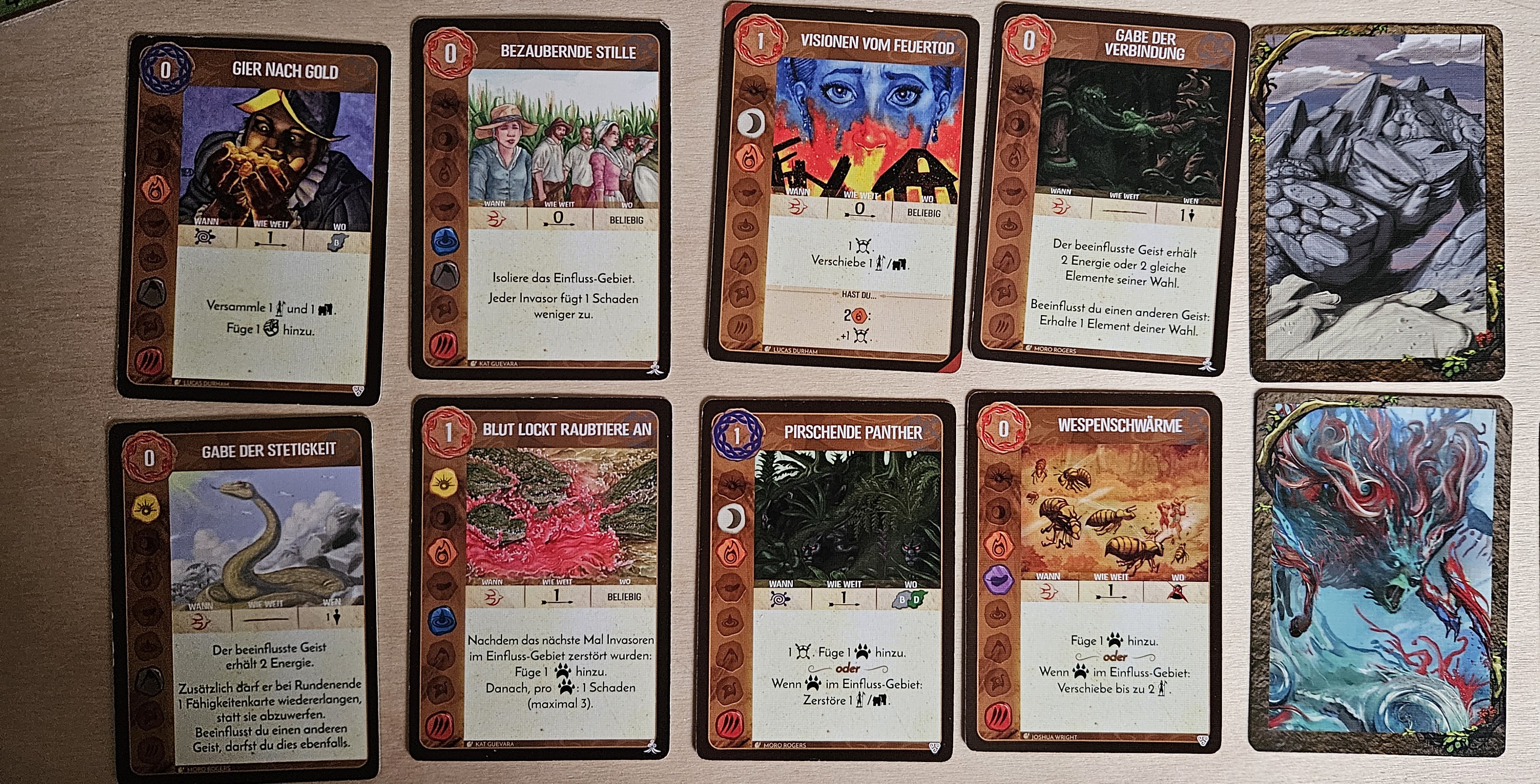 Wüten: In D5 richtet der Entdecker 1 Schaden an. In D8 ähnliches Spiel wie in B2: Die Invasoren zerstören eine Präsenz der Rache und es kommen eine Seuche und eine Ödnis in das Gebiet.