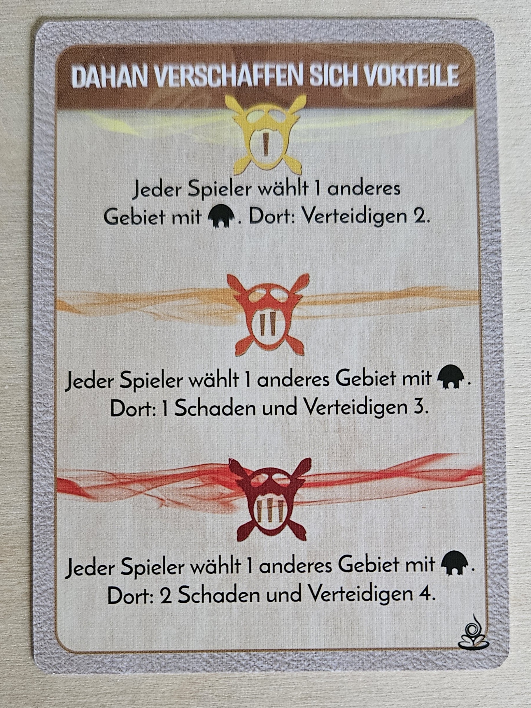 Wilde Rache auf D8 (2. +3. Zeile), 1+2+2 (Ödnis) Schaden, zerstört Dorf und Stadt, +3 Furcht.