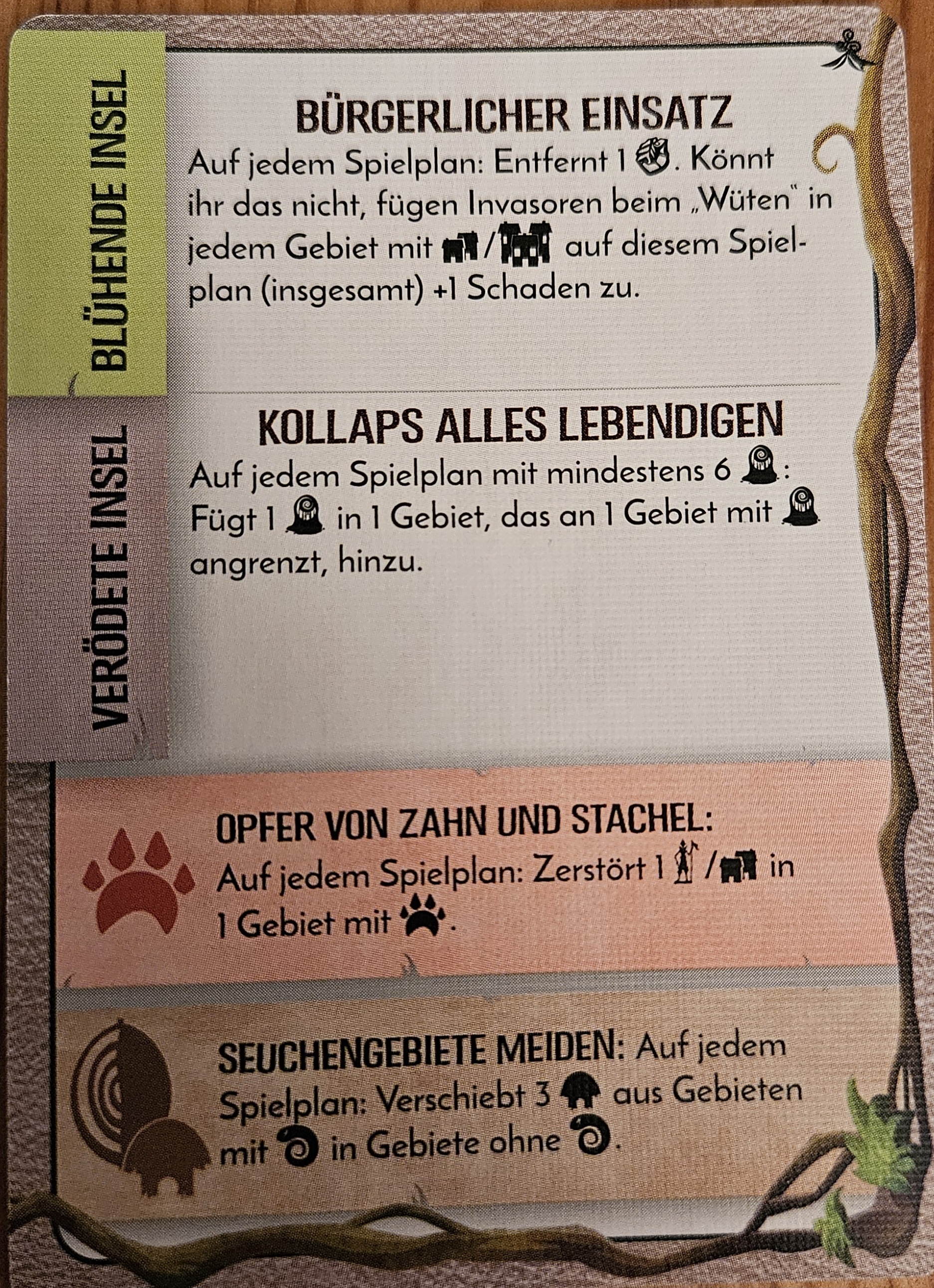 - "Dem Dschungel zu nah" auf W10. +1 Furcht und ein Entdecker wird zerstört/ nach W9 verschoben. +1 Furcht