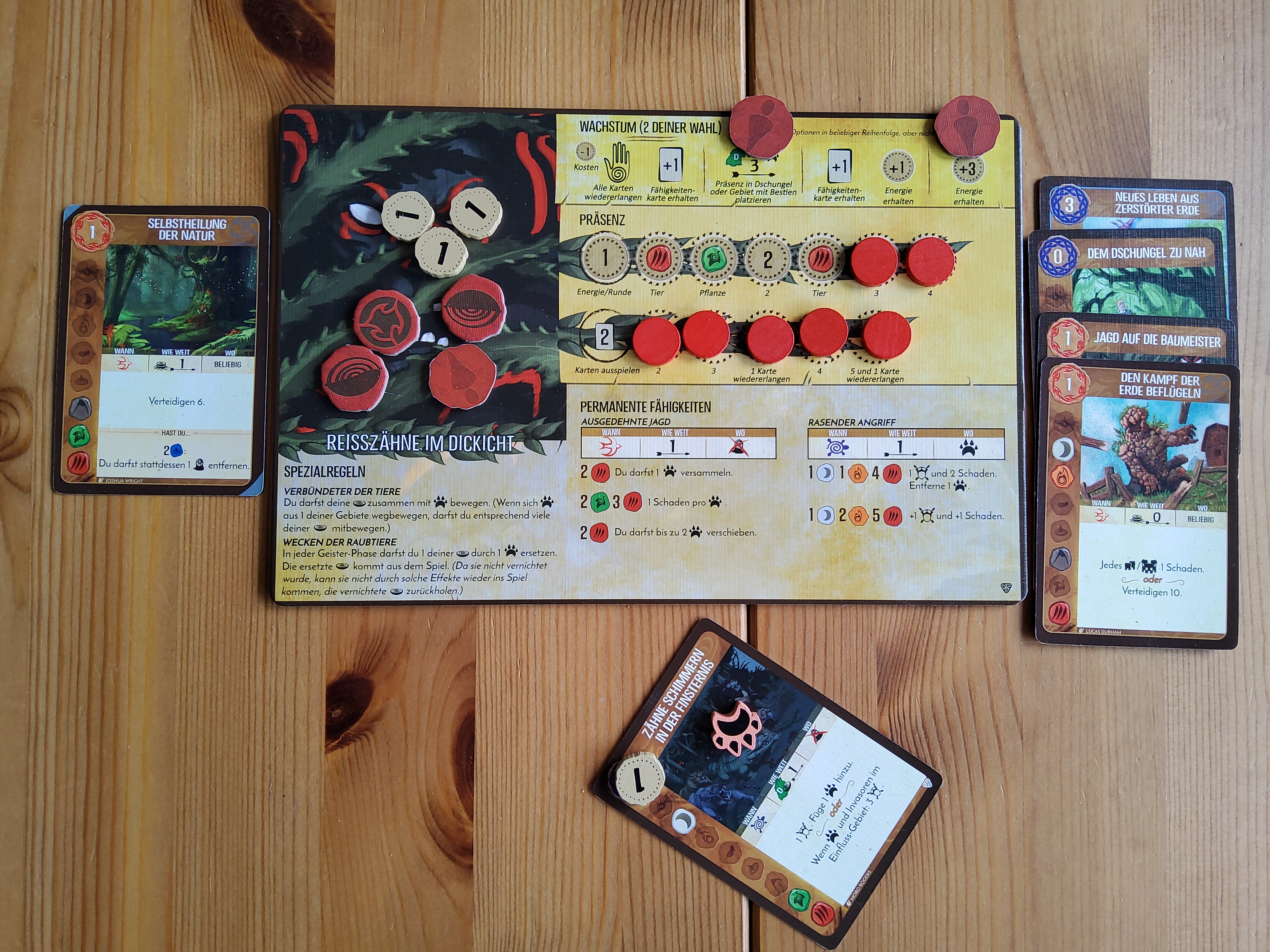 +3 Energie, +1 Tiersymbol, +1 Ödnis von SW3 nach SW4, 3 Karten ausspielen.