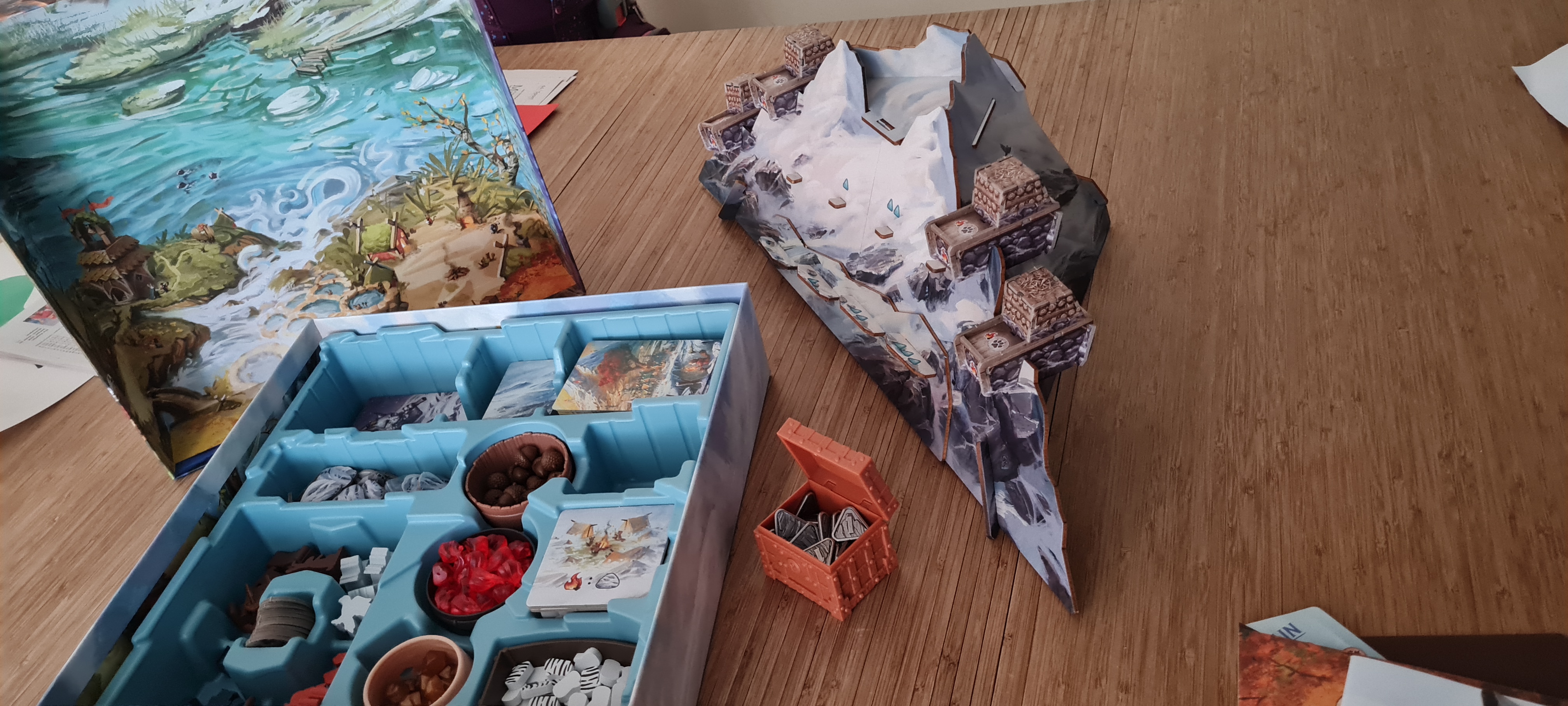 Und als Einstimmung, obwohl es ein extrem anstrengender Tag war, aber ich MUSS jetzt einfach Everdell spielen! Und ich werde nur Newleaf und die Legenden dazunehmen, weil sonst dauert es zulange. Auch wenn mir die Expedition durch das Gebirge fehlen wird...