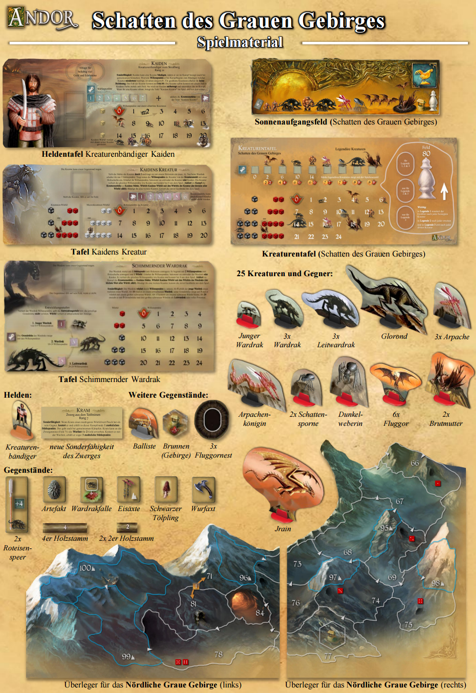 Tatsächlich habe ich einige Kreaturen aus der Andor App (Geheimnis des Königs) übernommen, doch sie wurden alle etwas modifiziert, um deren Rolle in der Erweiterung als "Legendäre Kreatur" gerecht zu werden.