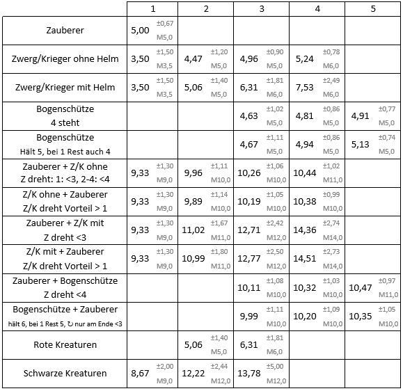 Die Anmerkungen dazu fand ich spannend und habe noch alle 2er-Kombinationen mit dem Zauberer durchgerechnet.