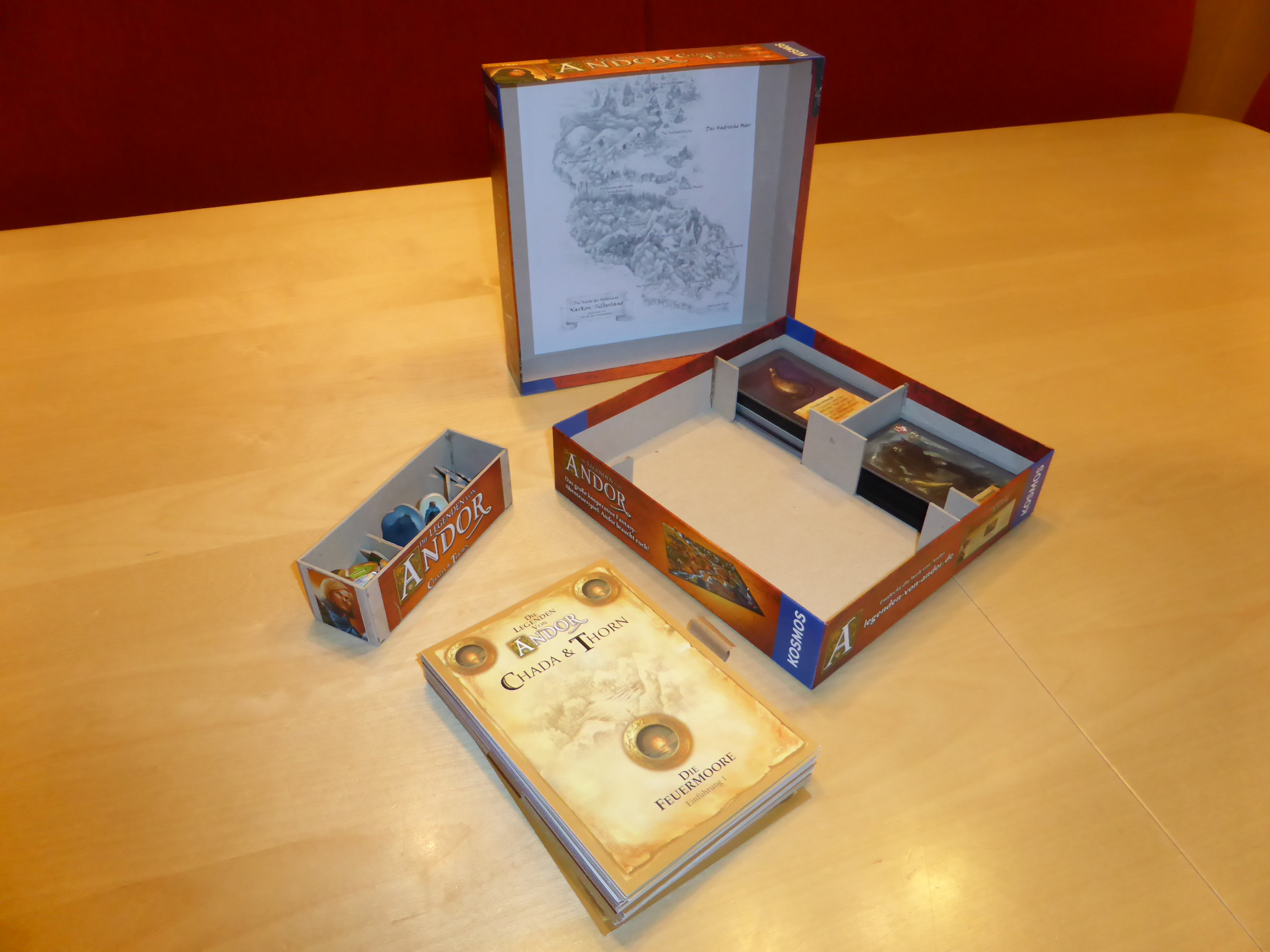 Für meine Andor spiele habe ich mir jeweils 2 Sortierboxen von pollin gekauft. Die passen perfekt in die Schachtel und da passt alles rein. Bei mir liegen lediglich die Ereigniskarten und die Schicksalskarten in Tüten. Der Rest passte in die beiden Boxen.