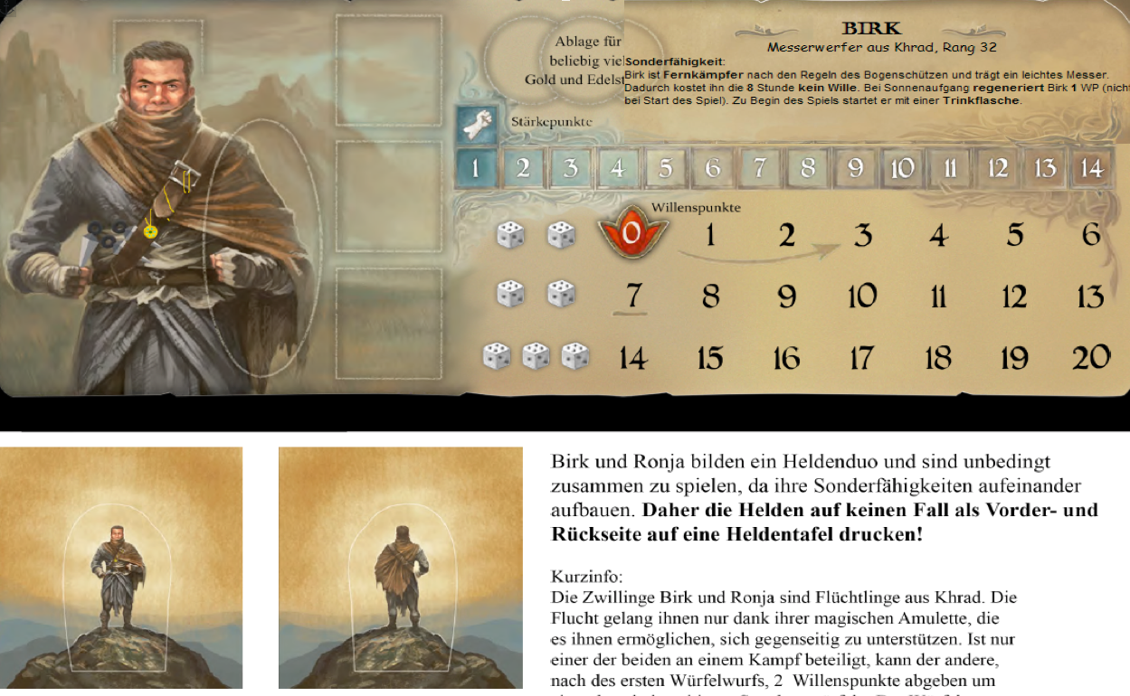 Der Messerwerfer kann 2 Laufstunden sparen aufgrund des Start-TS, hat die 8. Stunde gratis und regeneriert jeden Sonnenaufgang 1 WP (hat also in gewisser Weise alle 2 Tage die zweite Überstunde noch gratis dazu). Zudem ist er ein Fernkämpfer. Alles in allem also einfach ein Zeitsparer in allen Bereichen – ihn finde ich sehr stark!