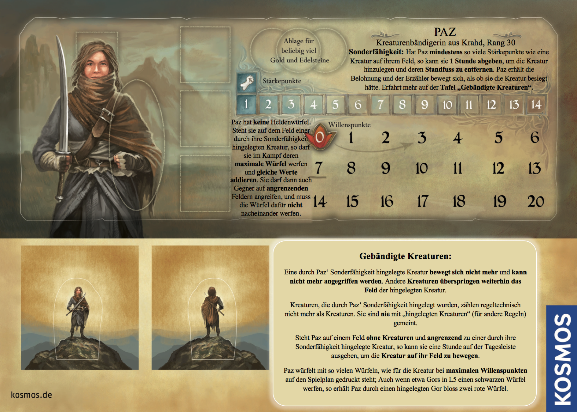 Für mich besteht die Lösung – wie schon erwähnt – darin, dass ich ein wenig über diese anfänglichen Ansätze meditiere, und sie, sobald sie sich einigermassen gefestigt haben, bereits an dich maile. Ich hoffe, es finden sich einige gute Ideen darunter, oder noch besser welche, die die Fantasie anderer Forum-Besucher anzukurbeln vermögen. Nun sind diese Fan-Helden dadurch aber weit davon entfernt, ausgereift, ausbalanciert, und erst recht fehlerfrei zu sein. Darum begrüsse ich besonders kritische Rückmeldungen – ich werde Regelfragen offen gelassen, unverständliche Formulierungen benutzt, Strategien ignoriert und Spezialfälle vergessen haben.