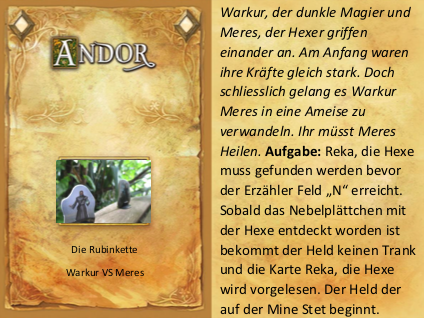 [b]Hintergrund:[/b] Warkur, der dunkle Magier und Meres, der Hexer griffen einander an. Am Anfang waren ihre Kräfte gleich stark. Doch schliesslich gelang es Warkur Meres in eine Ameise zu verwandeln.