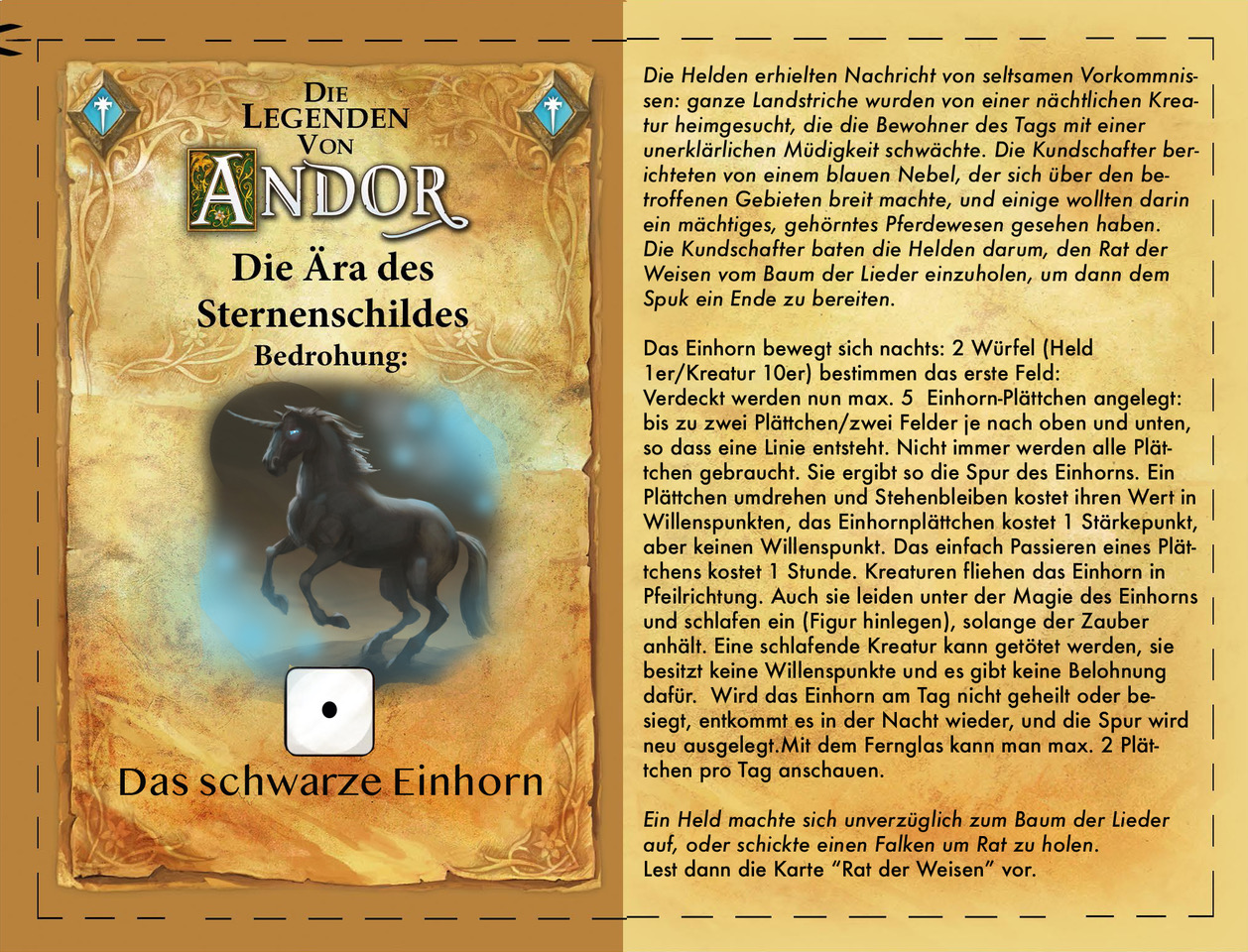 Die Helden erhielten Nachricht von seltsamen Vorkommnissen: Ganze Landstriche wurden von einer nächtlichen Kreatur heimgesucht, die die Bewohner des Tags mit einer unerklärlichen Müdigkeit schwächte. Die Kundschafter berichteten von einem blauen Nebel, der sich über den betroffenen Gebieten breit machte, und einige wollen darin ein mächtiges, gehörntes Pferdewesen gesehen haben …
