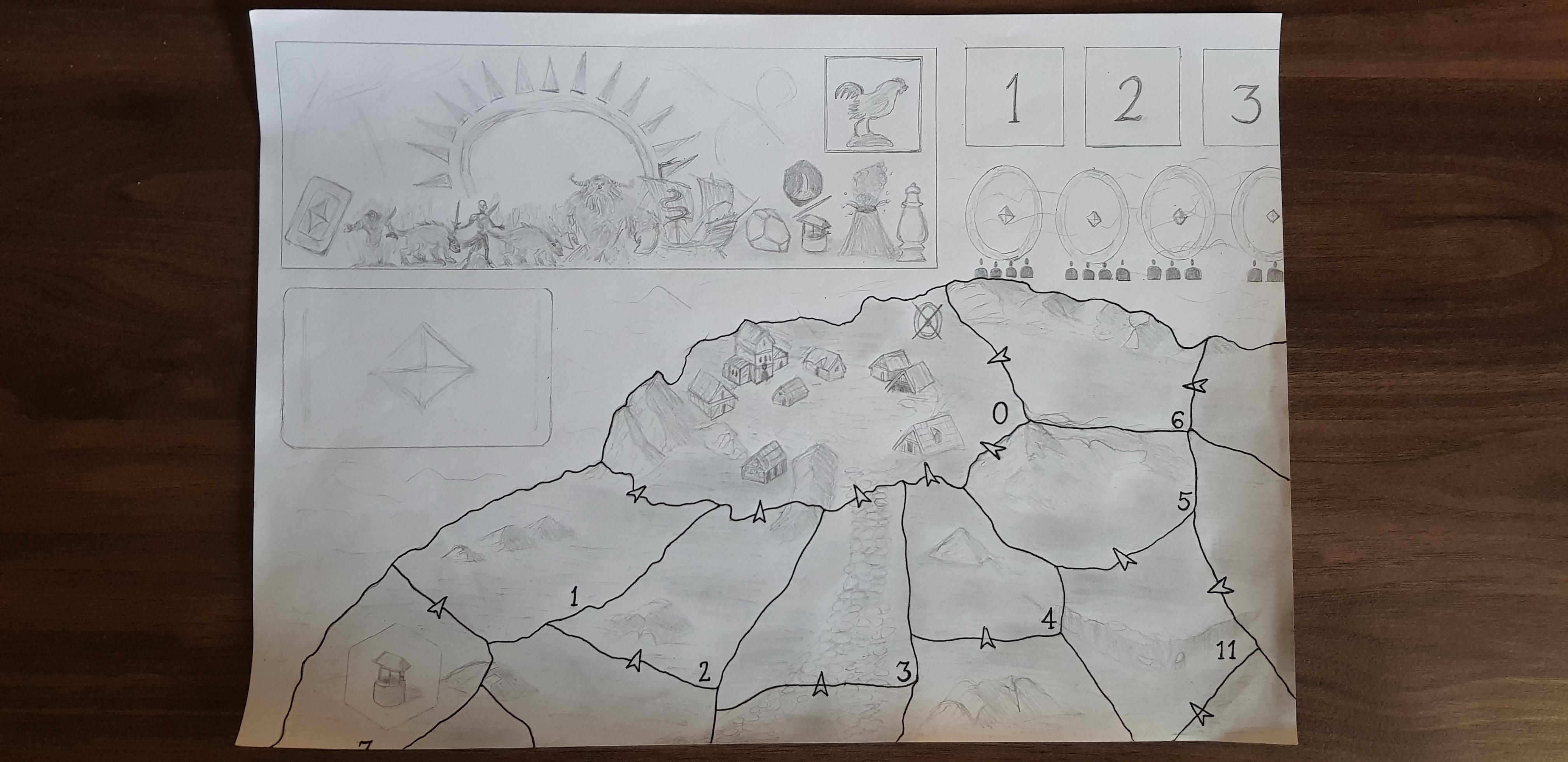 Nachdem ich vor einiger Zeit schon mal einen Beitrag geschrieben hatte, in dem es um eure Ideen zur Gestaltung Danwars ging (an dieser Stelle nochmal vielen Dank für all eure Beiträge), wollte ich jetzt so nach und nach mal die Entwicklungen des Spielplans sowie all der Dinge, die dazugehören (Ereigniskarten, Kreaturen, neue Plättchen, besondere Orte, etc.) reinstreuen. Für alle die, die gespannt darauf sind, wie der Danwar-Spielplan ausschaut.